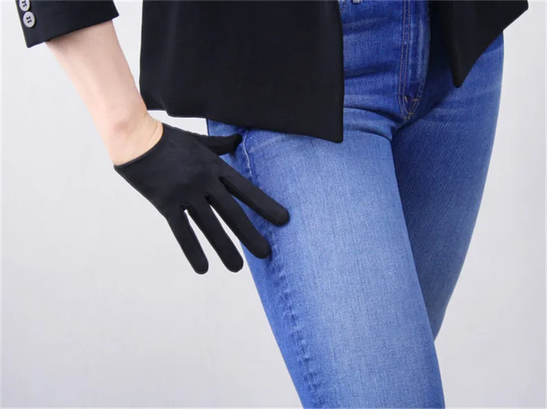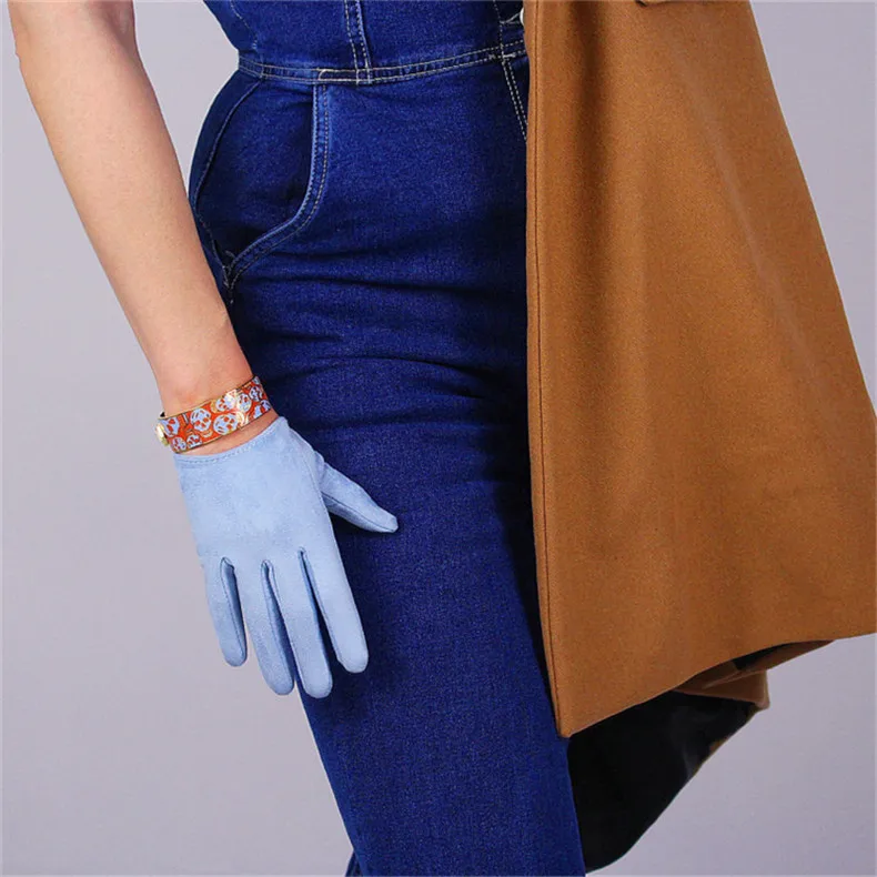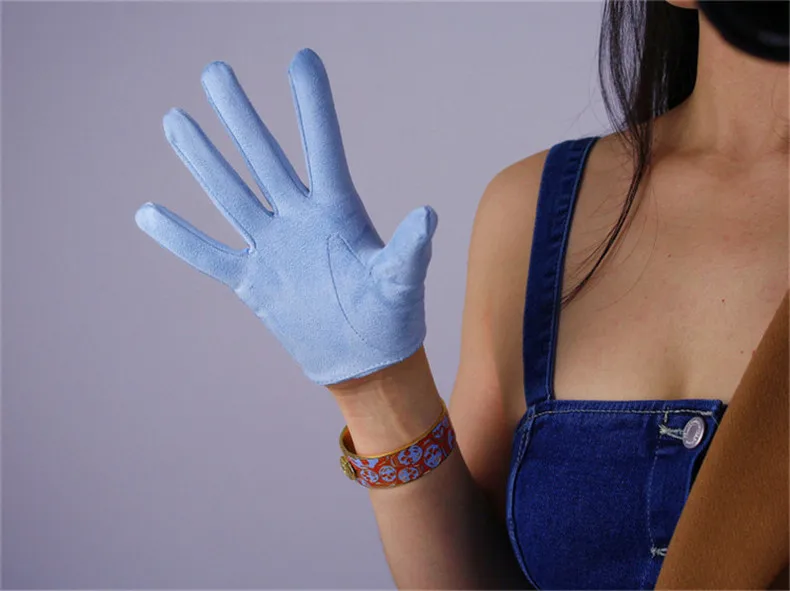16 см замшевые короткие перчатки Короткая секция эмуляция кожа матовая замша светло-голубые женские перчатки Бесплатная доставка WJP11-16