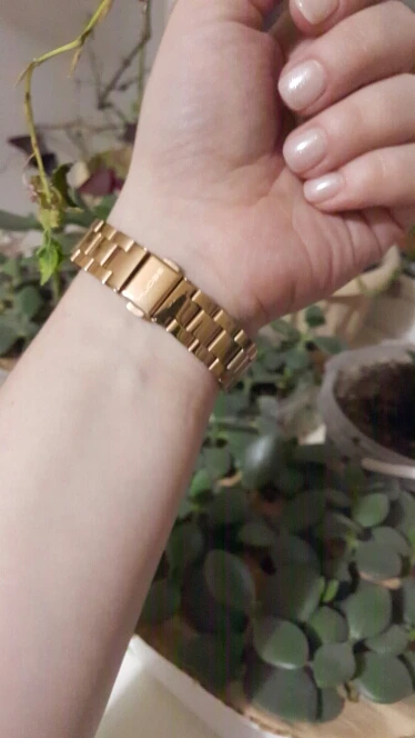 Ремешек хороший, но не плотно садилась задняя крышка на капсулу, т.к. была немного погнута. Поправила вручную, все нормально! Ремешок регулируется под разные руки. последние фото через месяц но́ски
