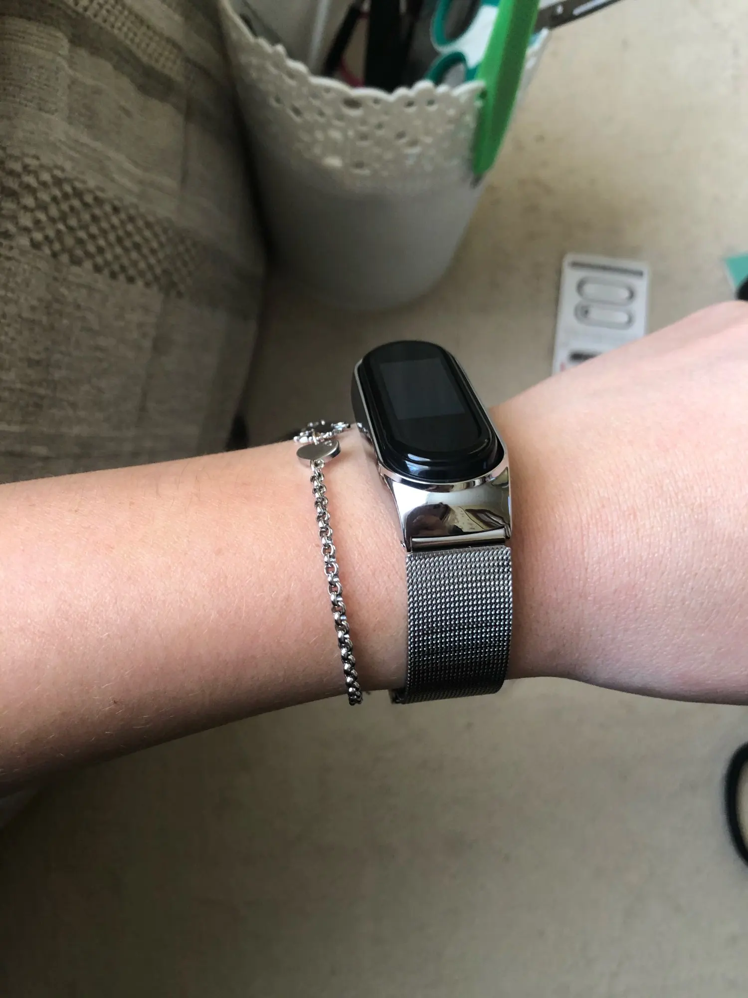 Продавца рекомендую! Браслет смотрится современно и красиво, регулируется легко за пару движений. Вместе с трекером выглядит как хорошие наручные часы. Большое спасибо!