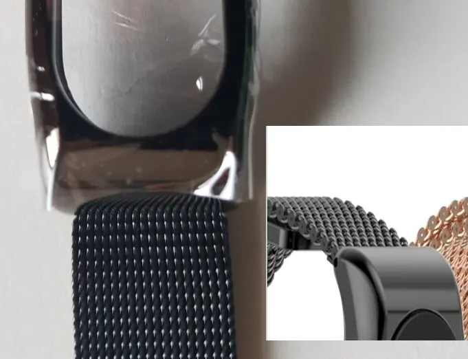 Хороший браслет. Часы вставляются снизу, закрепляясь магнитной рамкой, это очень понравилось, в отличии от других браслетов, где нужно вдавливать часы. Ремешок закрепляется защёлкой, это конечно не так удобно, как магнитом, но в целом нормально. Пришло очень быстро, дней за 9 где-то в МО.