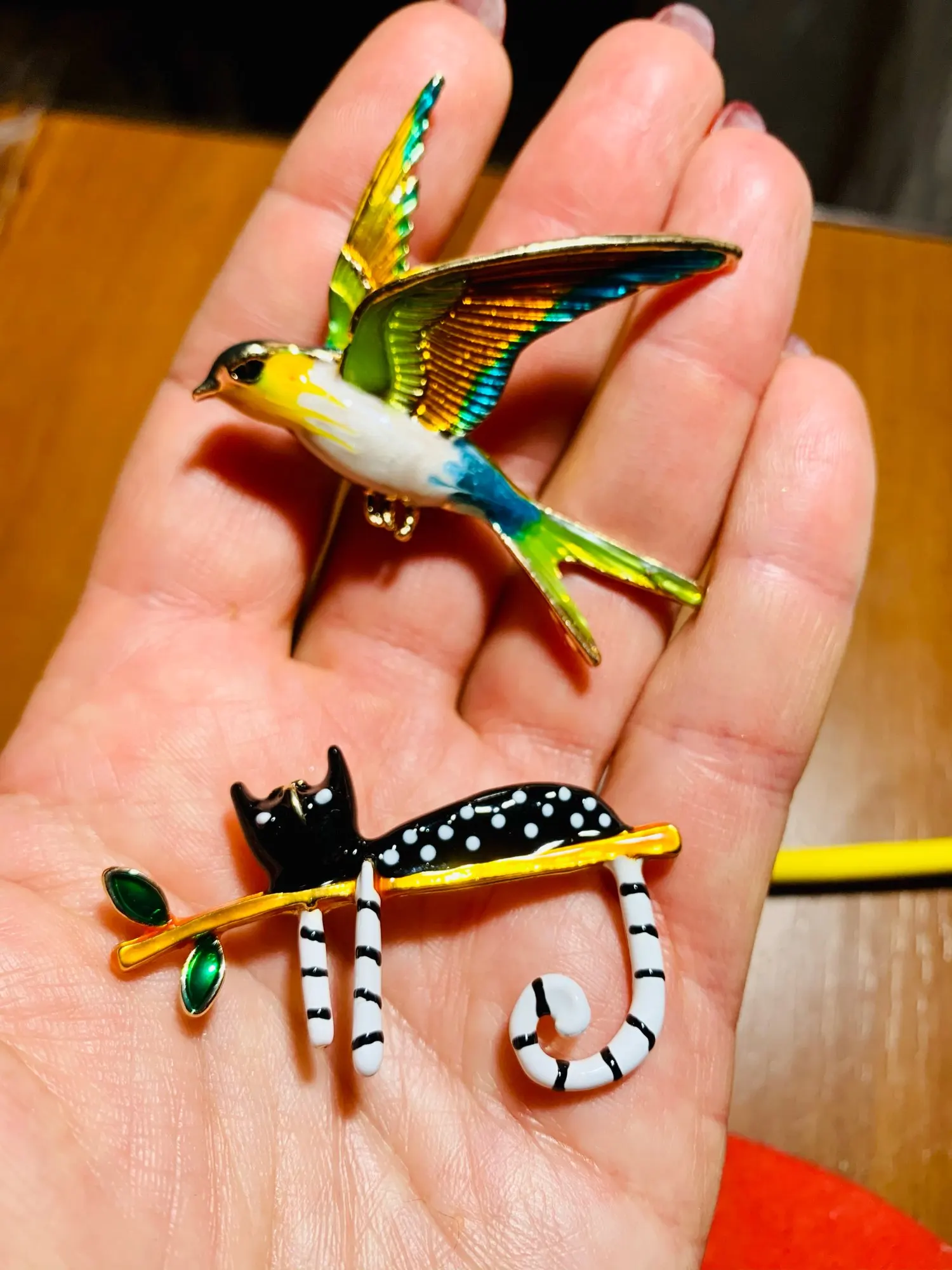 Кошечка даже лучше, чем ожидала. Фото видимо не передаёт всей ее поеоестки. Эмаль качественная, яркая, блестящая. Очень довольна магазином, продавцом покупками. Все броши - чудо и красота!!!