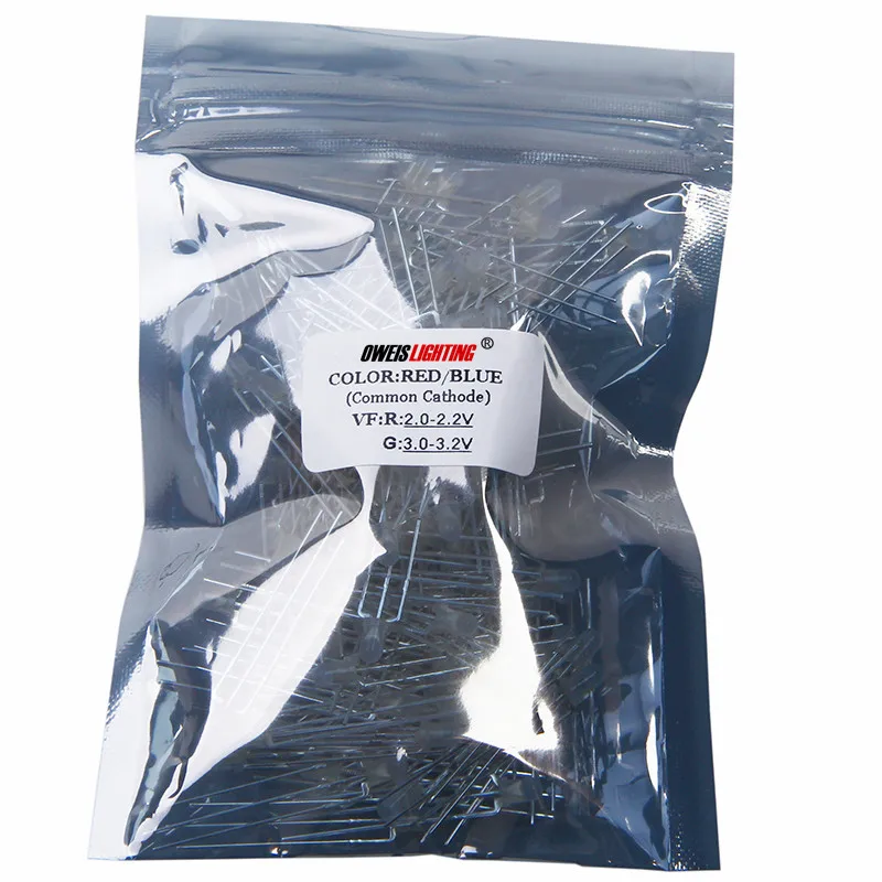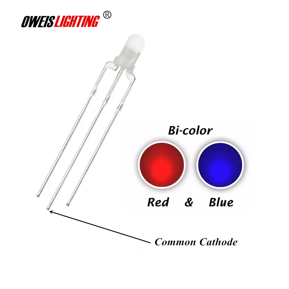100 шт, толщина 3 мм, красный и синий матовый светодиодный общий анод 3 штыря индикатор светильник с круглой головкой 20mA двухцветная Кольцевая вспышка лампа