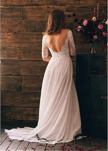 Прозрачное цветочное кружевное свадебное платье с рукавом 34