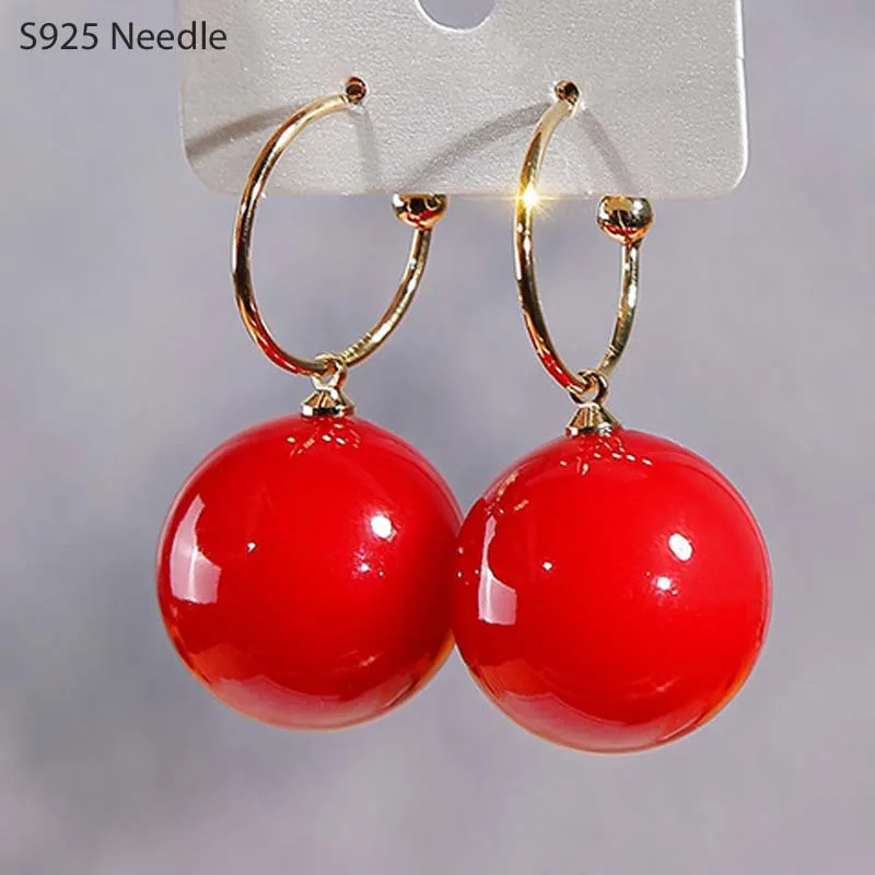 Серьги-кольца женские из серебра 925 пробы, с красным жемчугом