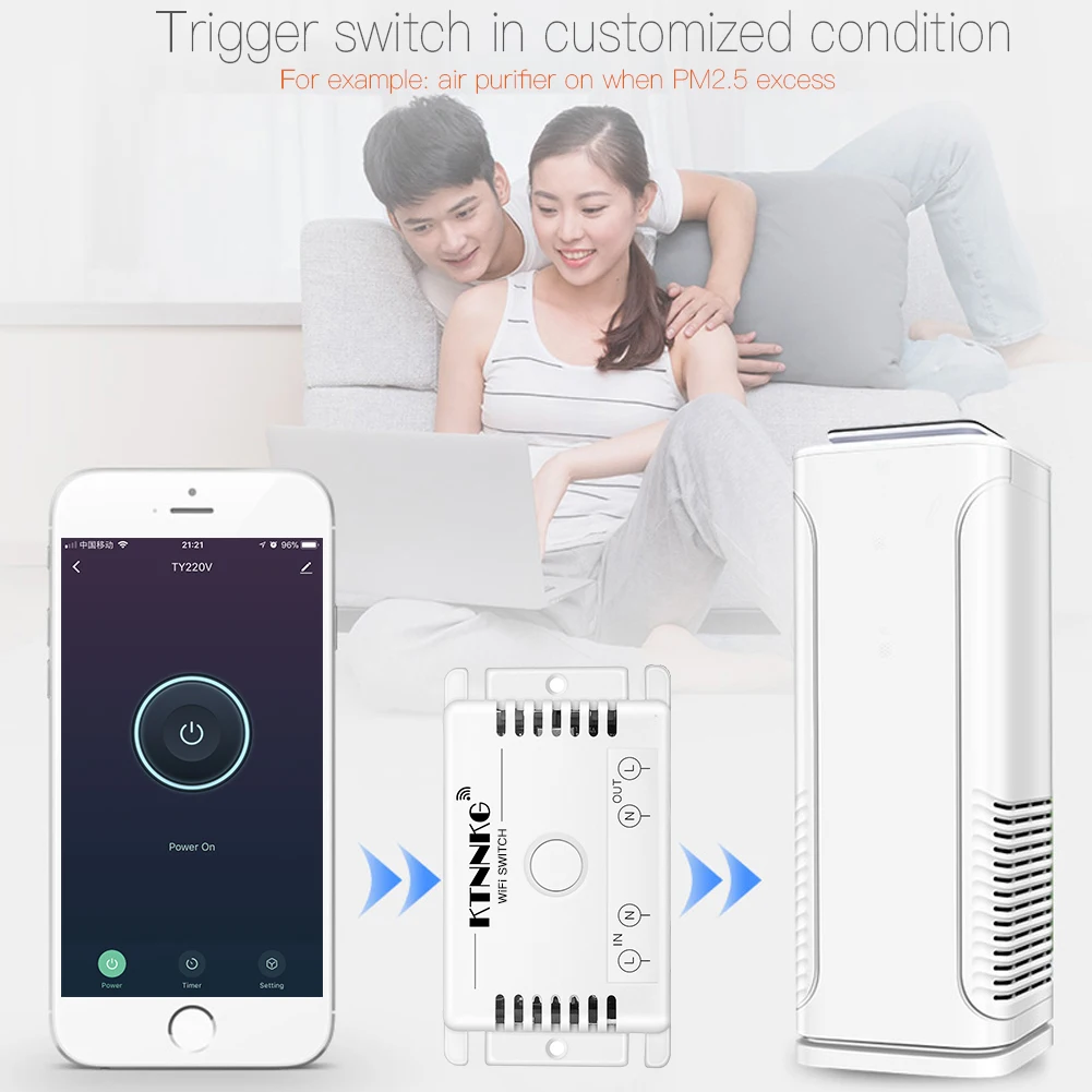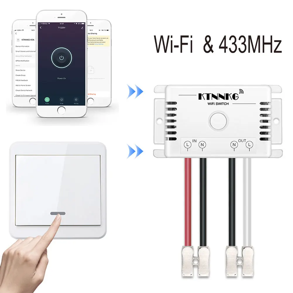 KTNNKG TUYA WI-FI AC110-220V 10A 433 МГц RF умный дом переключатель...