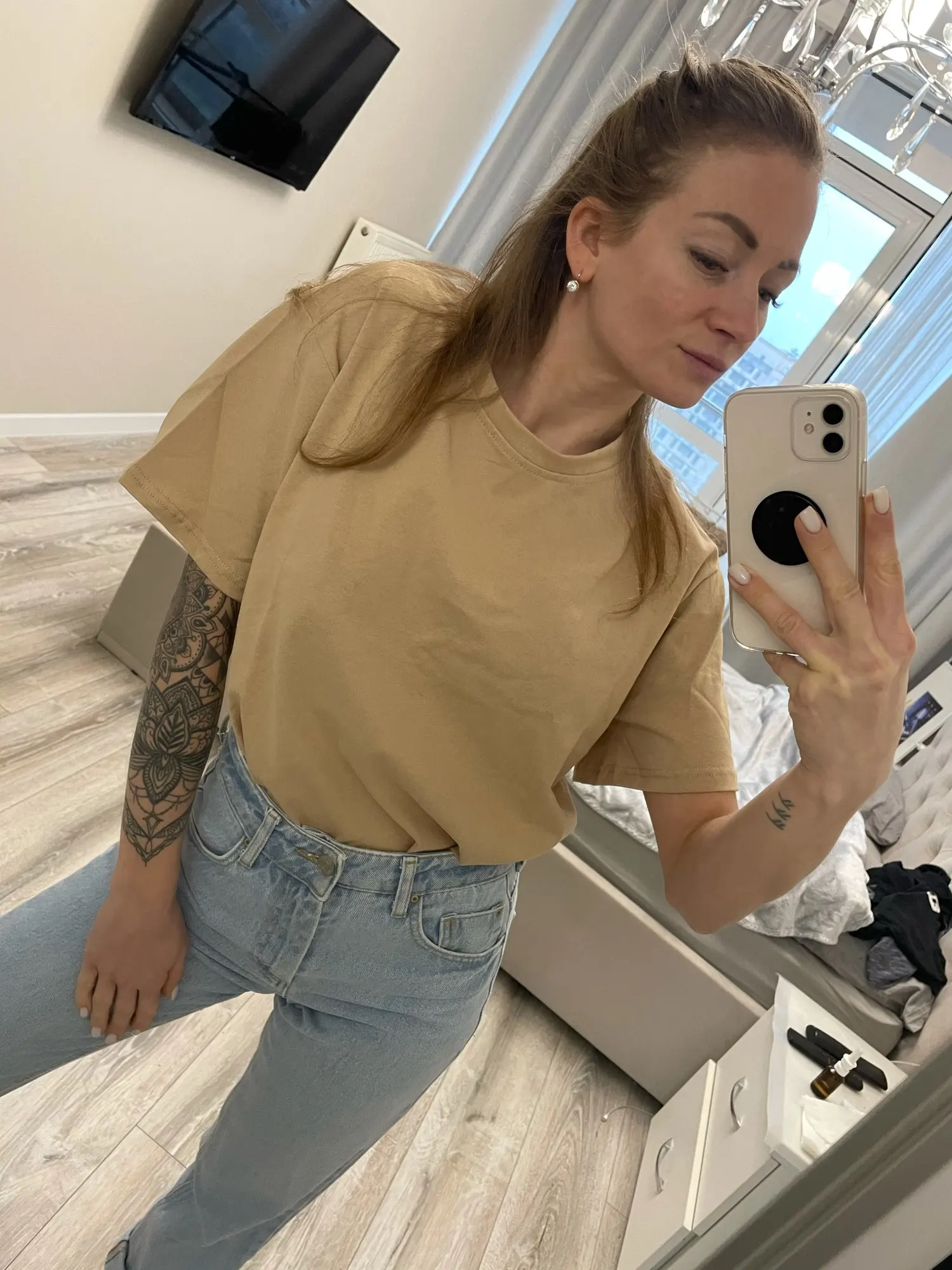 Футболка огонь! Плотная хорошая ткань. Хорошее качество. Сначала заказала бежевую, затем дозаказала белую. Обе понравились.