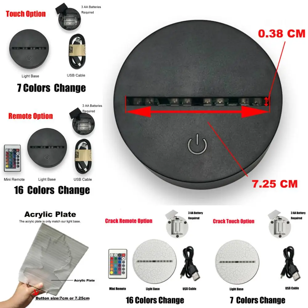 Вариант «TOUCH / 7 видов цветов»: Сенсорный usb-переключатель/7 цветов (красный/зеленый/синий/желтый/голубой/фиолетовый/белый) Светильник Цвет цоколя: черный Как Применение? Шаг 1: вставьте акриловую пластину в основание, затем подключите источник питания с помощью usb-кабеля или поместите 3 батареи в основание нижней части (Тип батареи: AA); Шаг 2: Нажмите кнопку питания, чтобы изменить цвет между 7 цветами или введите режим автоматического мигания; Шаг 3: 4 секунды нажатия кнопки питания, светильник будет выключен. Что в коробке? 1 акриловую поверхность; 1 светильник базы; 1 взаимный обмен данными между компьютером и периферийными устройствами кабель (0,8 м); -1 шт. руководство пользователя. Опция «Удаленный/16 видов цветов»: Пульт дистанционного управления + сенсорный переключатель 16 цветов, 4 режима мигания и светильник регулируется! Светильник Цвет цоколя: черный Как Применение? Шаг 1: вставьте акриловую пластину в основание, затем подключите источник питания с помощью usb-кабеля или поместите 3 батареи в основание нижней части (Тип батареи: AA); Шаг 2: Используйте пульт дистанционного управления, чтобы контролировать светильник. Измените цвет, интенсивность светильник или режим. Шаг 3: Выключите светильник с помощью пульта дистанционного управления или коснитесь кнопки питания в течение 4 секунд. Что в коробке? 1 акриловую поверхность; 1 светильник базы; 1 взаимный обмен данными между компьютером и периферийными устройствами кабель (0,8 м); 1 Инструкция по эксплуатации; 1 пульт дистанционного управления. Управляйте светильник только с помощью одного мини пульта дистанционного управления! Больше функций больше удовольствия! Примечание: батарея в комплект не входит. Перед использованием снимите защитную пленку.