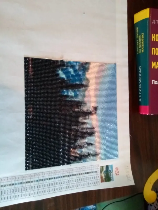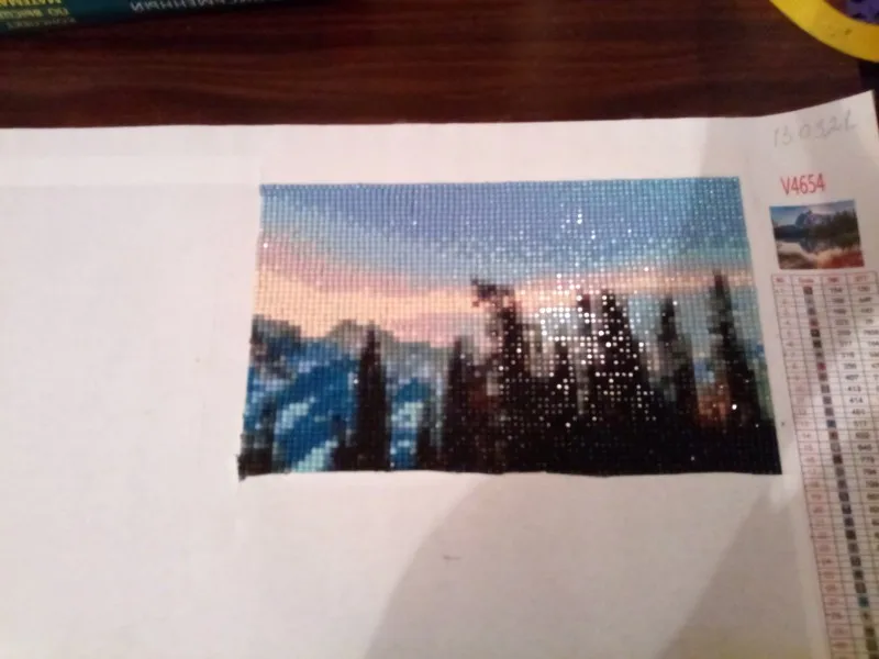 1.Refer to the comparison tale on the canvas to identify each diamond number which corresponds to a printed area on the canvas.
