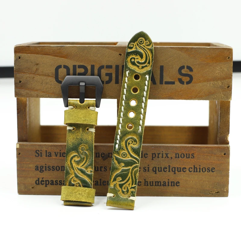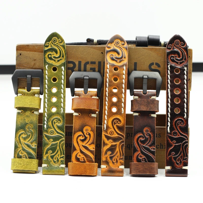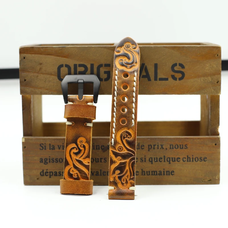 Ремешок для часов onthcelel из натуральной кожи с тиснением, винтажный браслет ручной работы для Panerai # D, 20 мм 22 мм 24 мм