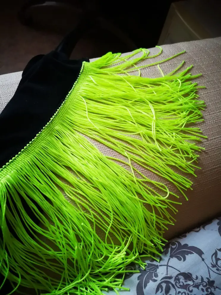 Товар хороший, серьезных недостатков нет, разве что блестки сыпятся с бахромы. Но я считаю, цена слишком высокая за материал, на котором очень-очень легко ставятся затяжки. Рублей 350-400 за это еще можно отдать, но не как не 600 рублей, да еще и с доставкой выше сотни. Снимаю звезду за борзость продавца.