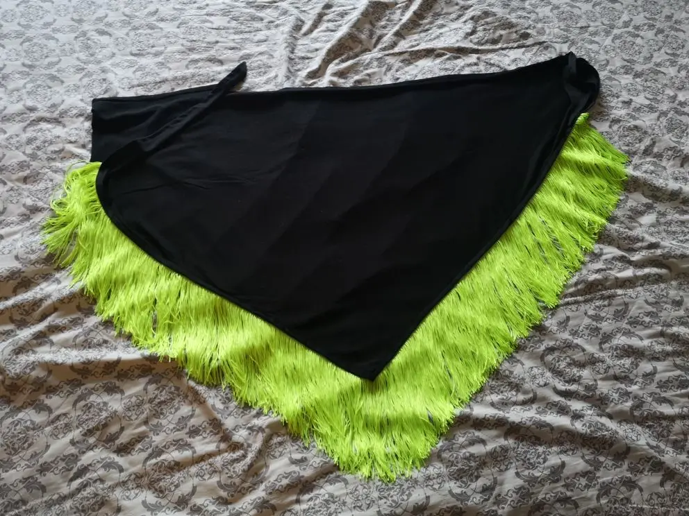 Женское платье для латиноамериканских танцев, с бахромой и треугольной юбкой, черная юбка для тренировок