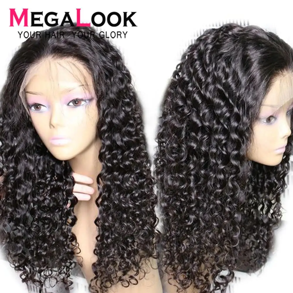Парик из натуральных кудрявых волос Megalook, 13x4, плотность 180, ...