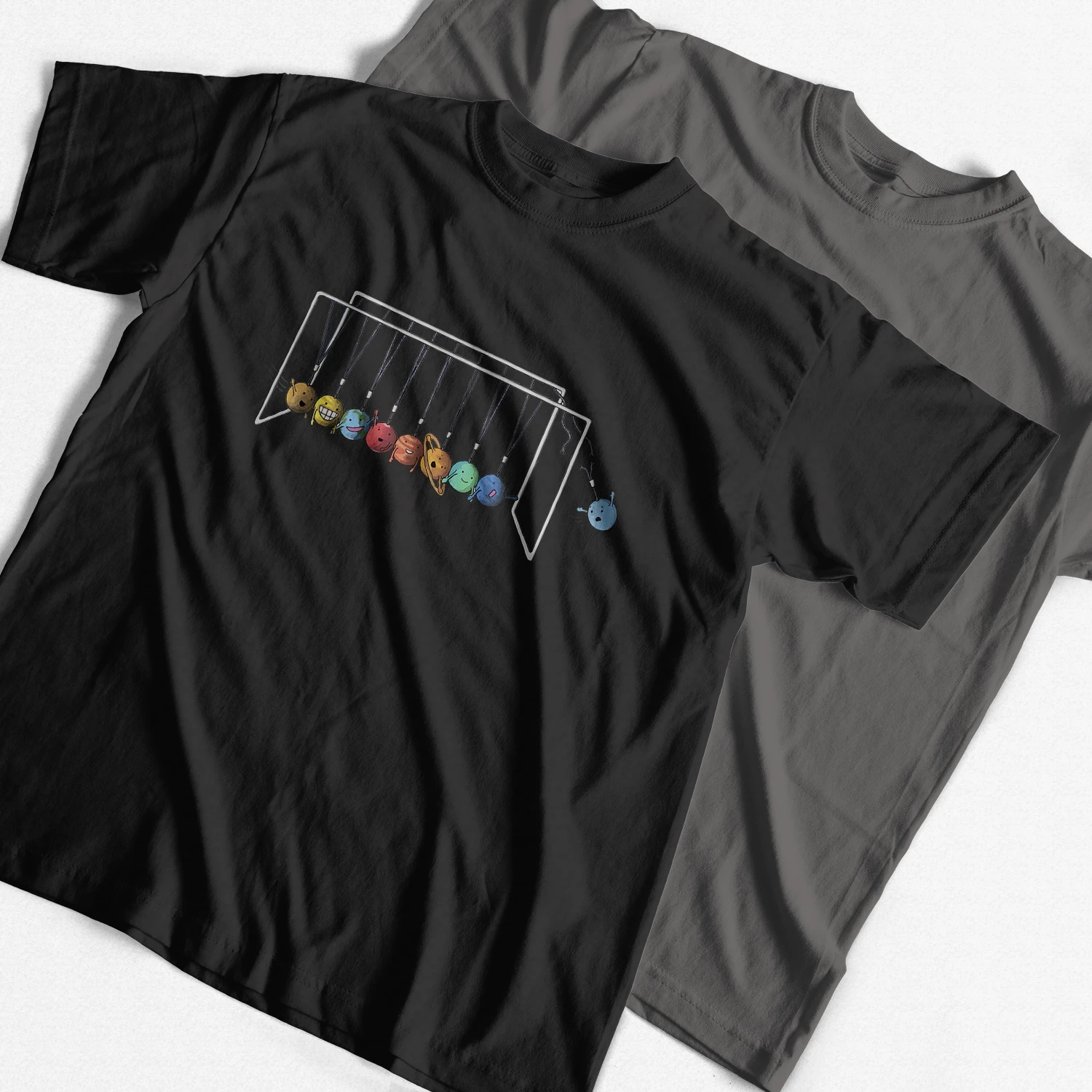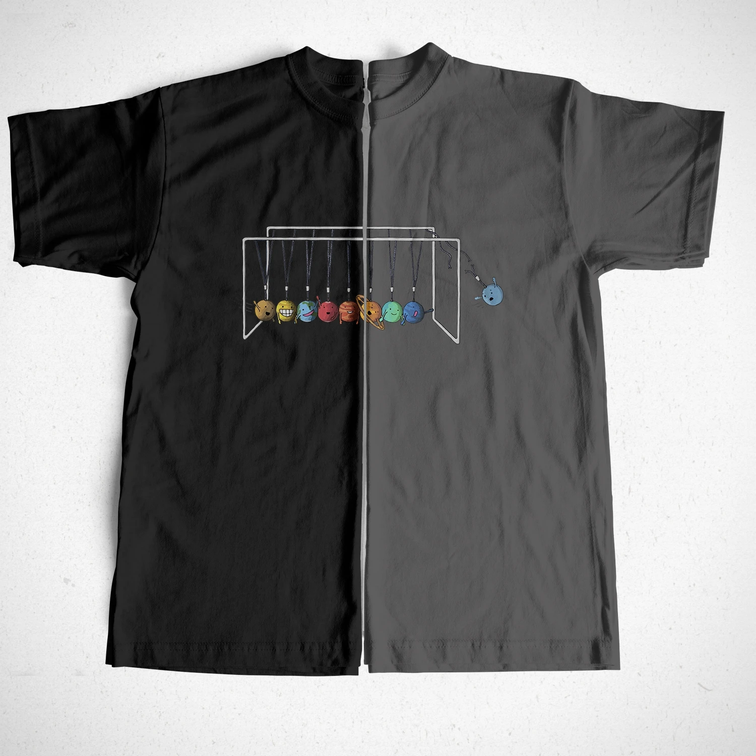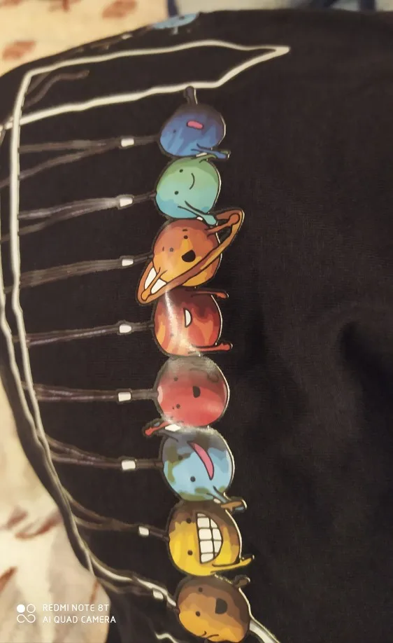 Отличная футболка с подвесными шариками Ньютона, с маленькими Рожицами-купил подарок Аа, ему понравится-мне это нравится.