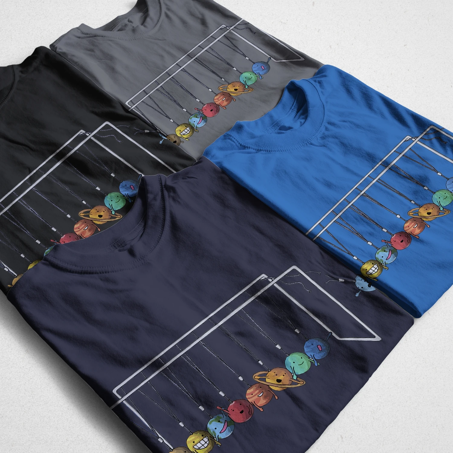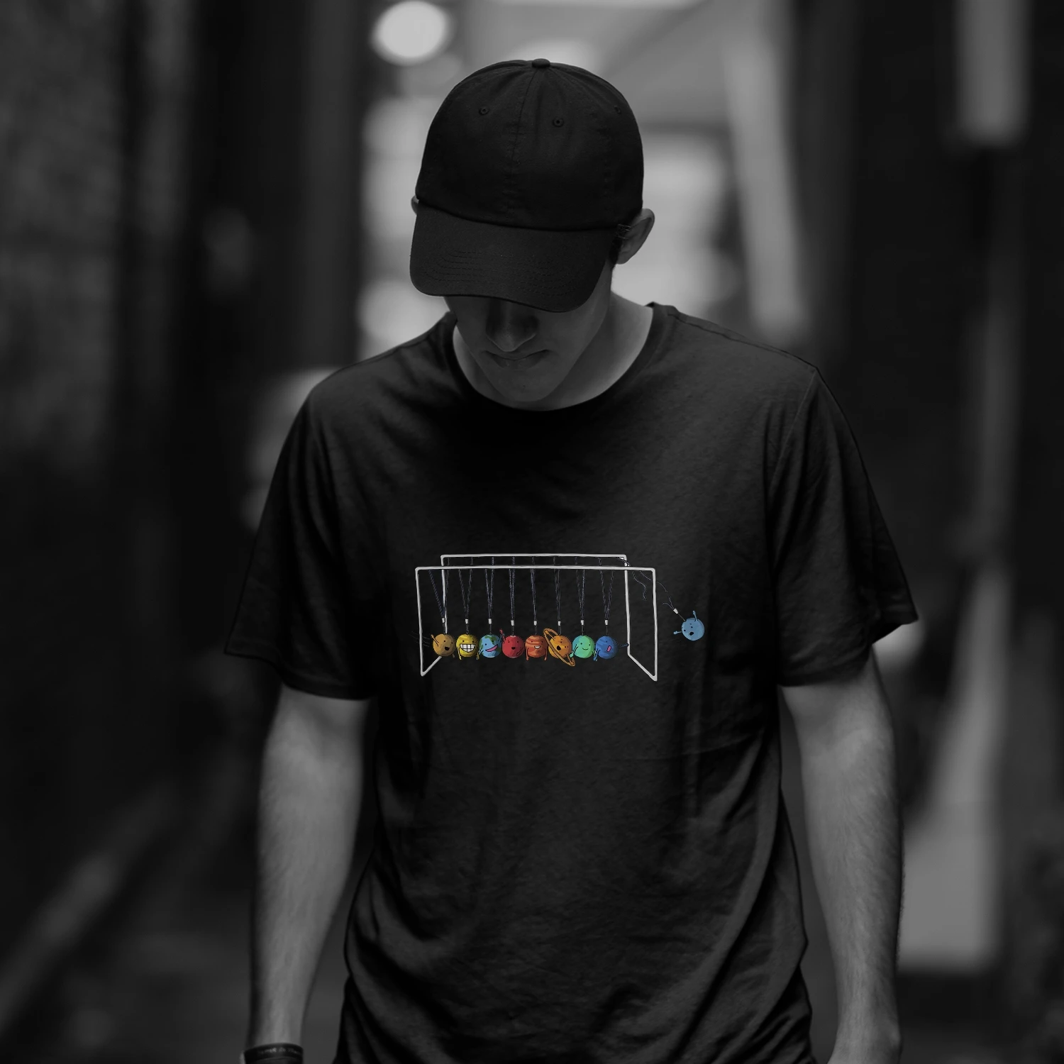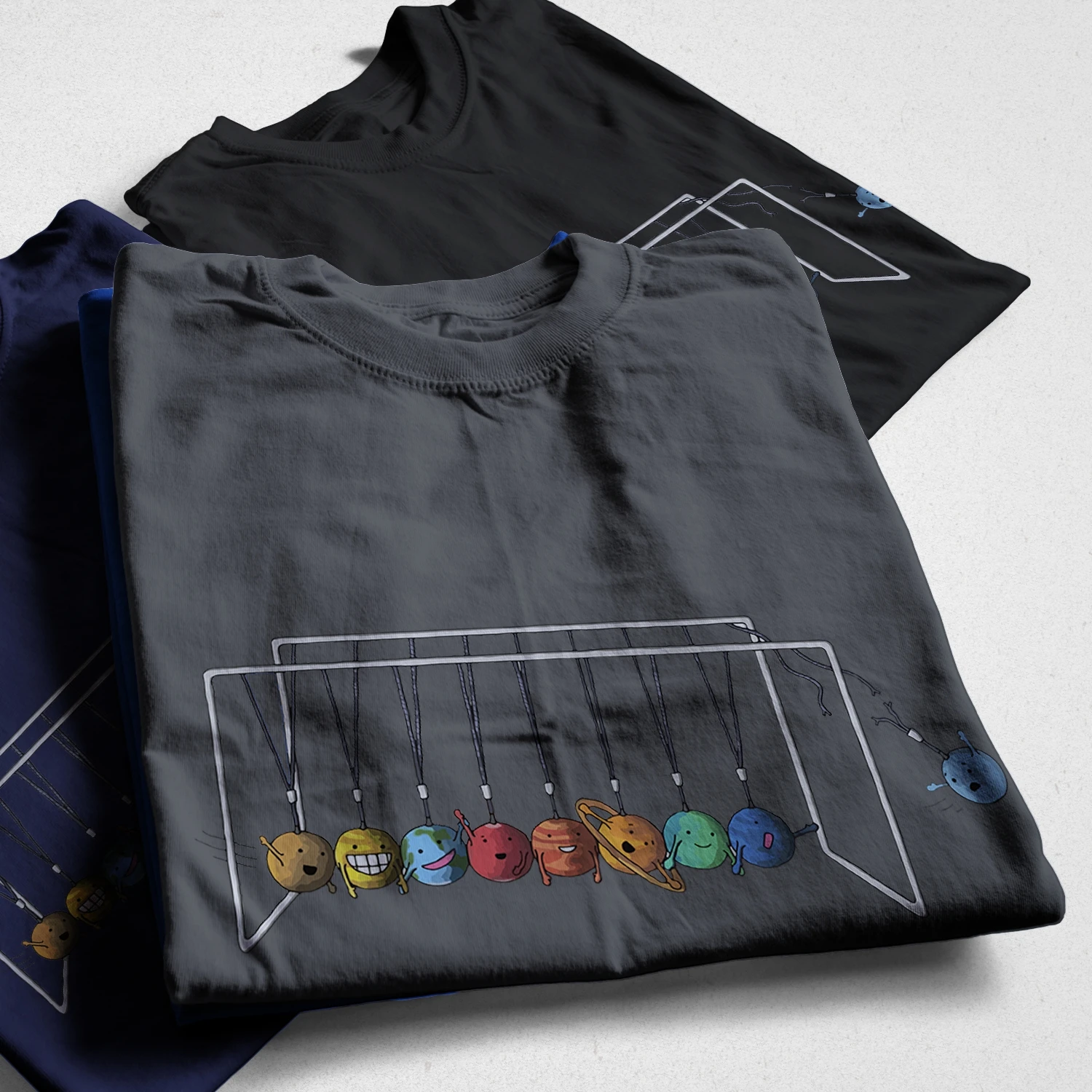 Отличная футболка с подвесными шариками Ньютона, с маленькими Рожицами-купил подарок Аа, ему понравится-мне это нравится.