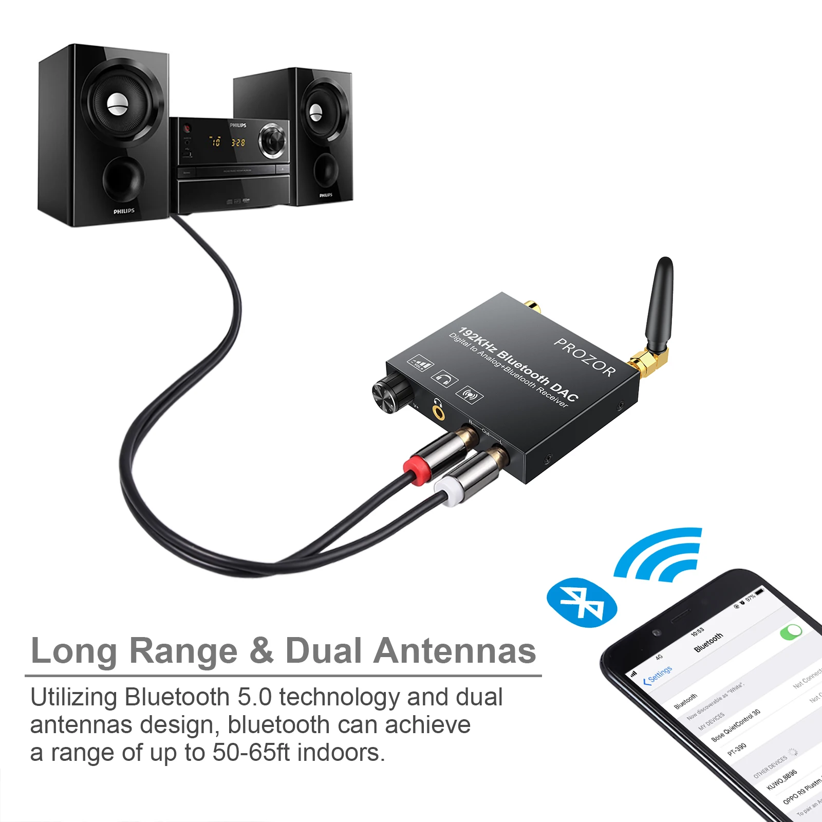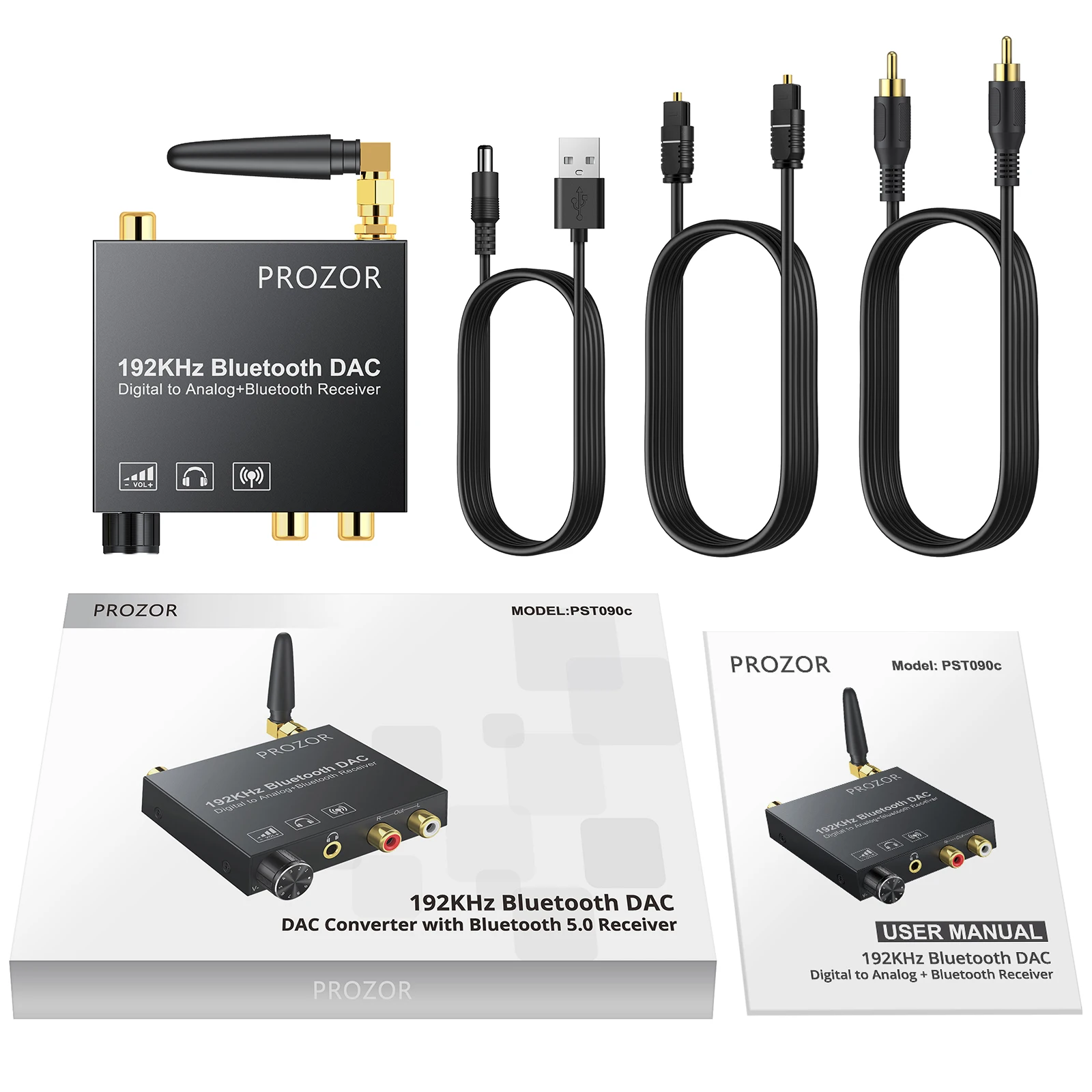Prozor 192kHz DAC преобразователь Bluetooth-совместимый приемник регулятор громкости Цифровой оптический коаксиальный Toslink к аналоговому аудио адаптеру