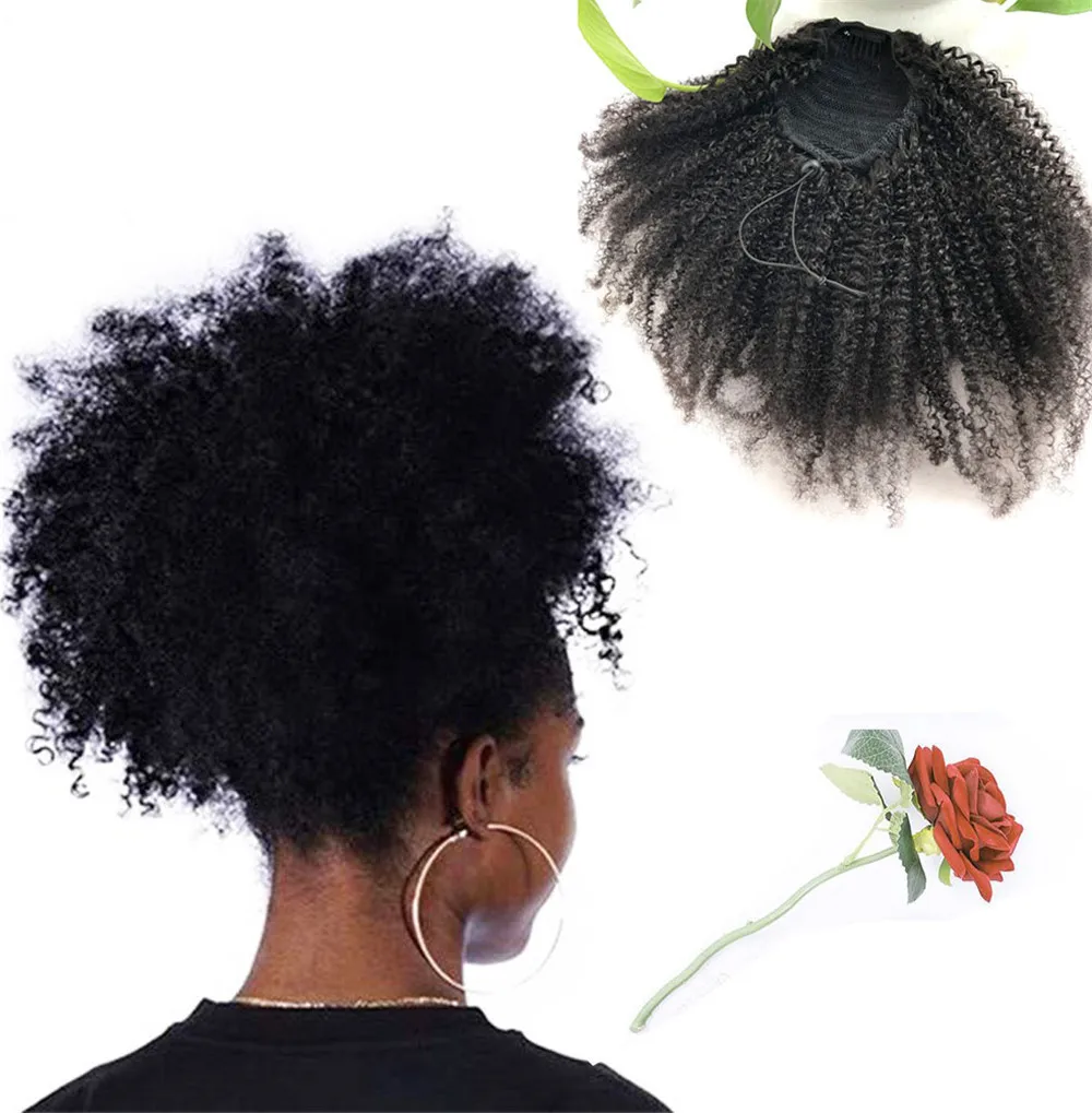 Eseewigs 4B 4C Afro Kinky завитые человеческих волос хвостик для чернокожих женщин естественный цвет волос Remy 1 шт клип в Drawstring Ponytails