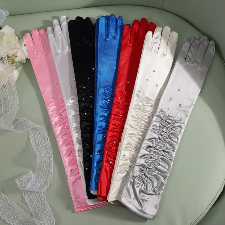 Сексуальные атласные перчатки Стразы 50 см с длинными пальцами для женщин и девушек, свадебное платье, танцевальные аксессуары, товары для вечерние, Пасха