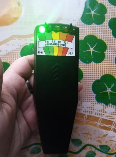 Темно-зеленый 0 1,5 milligauss; Зеленый светильник от 1,5 до 2,5 milligauss; Желтый от 2,5 до 10 milligauss; Оранжевый от 10 до 20 milligauss; Красный 20 + milligauss;
