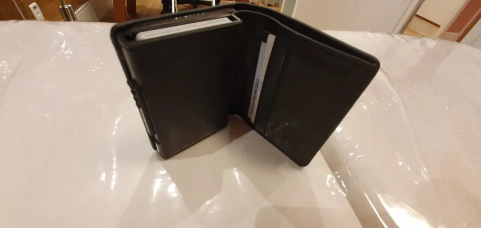Хороший кошелёк, но для наличных негоден - еле втискиваются. дополнительный отсек для карточек сделан не очень качественно - тесный. В основном отсеке карты держатся приемлемо, но при резком движении выпадают. Посмотрим сколько он протянет :)