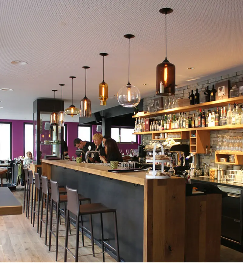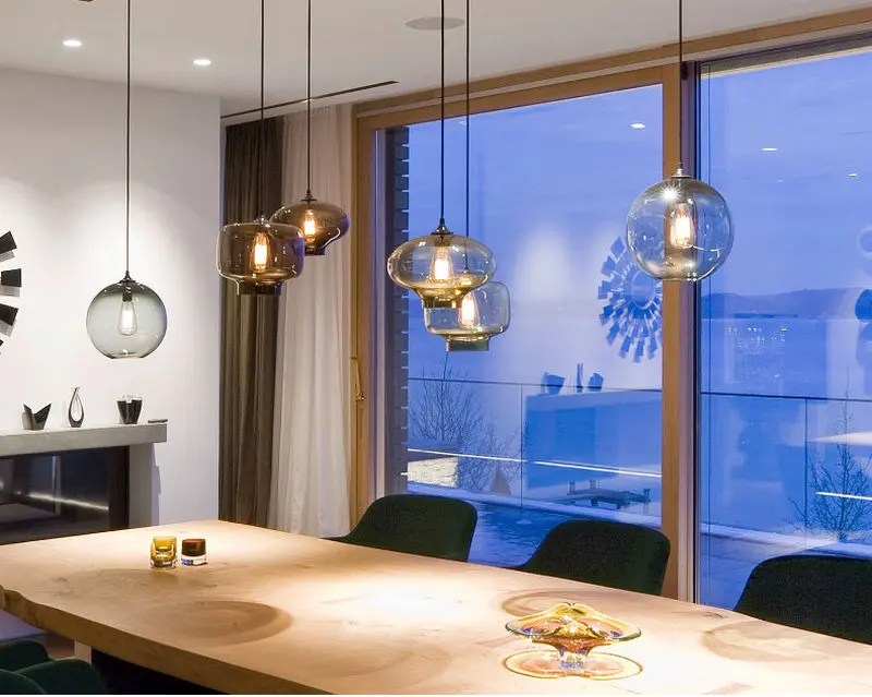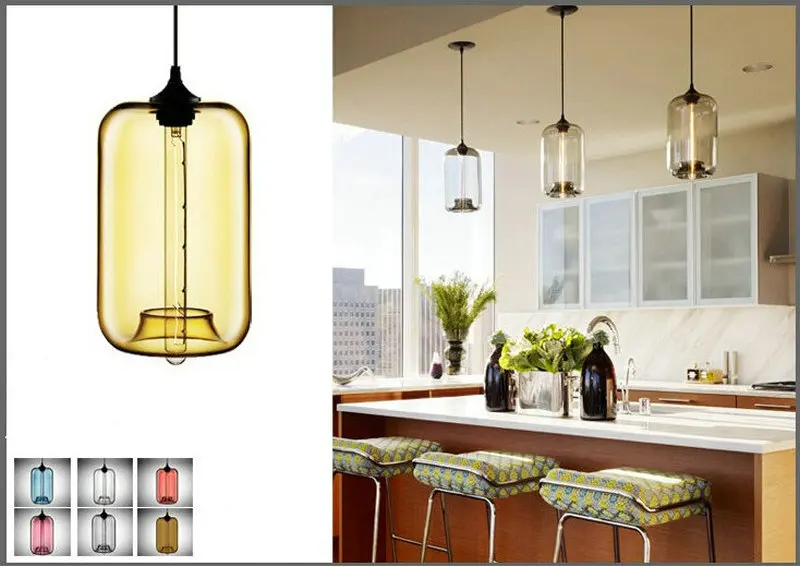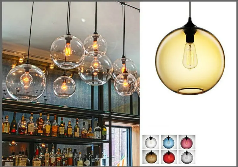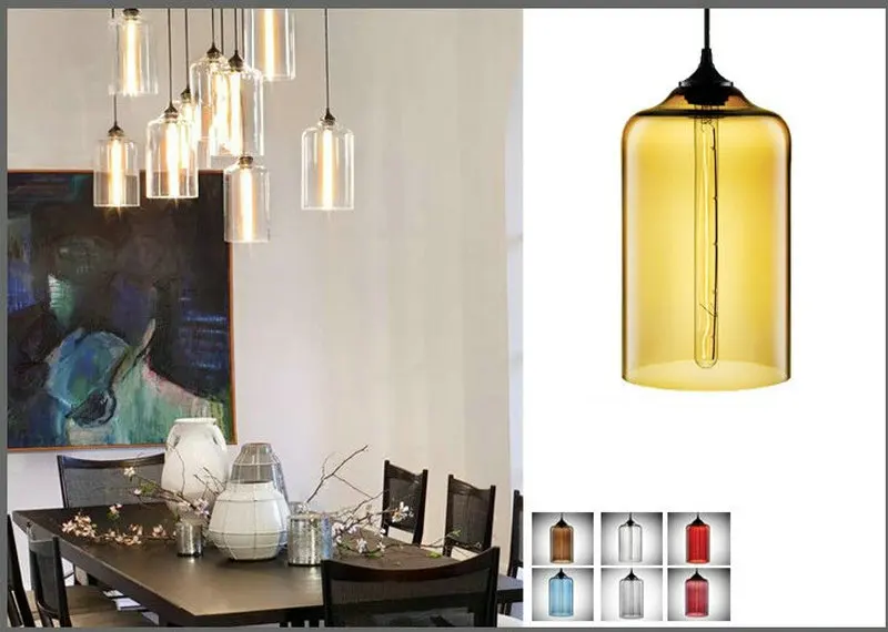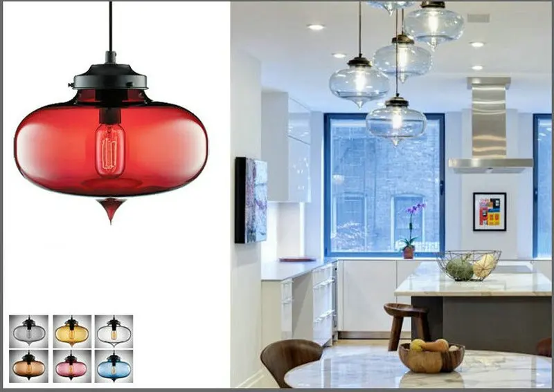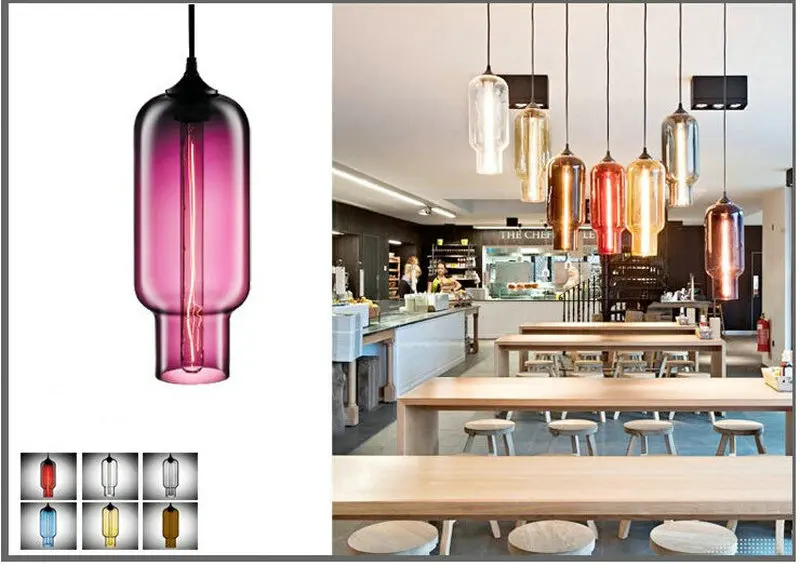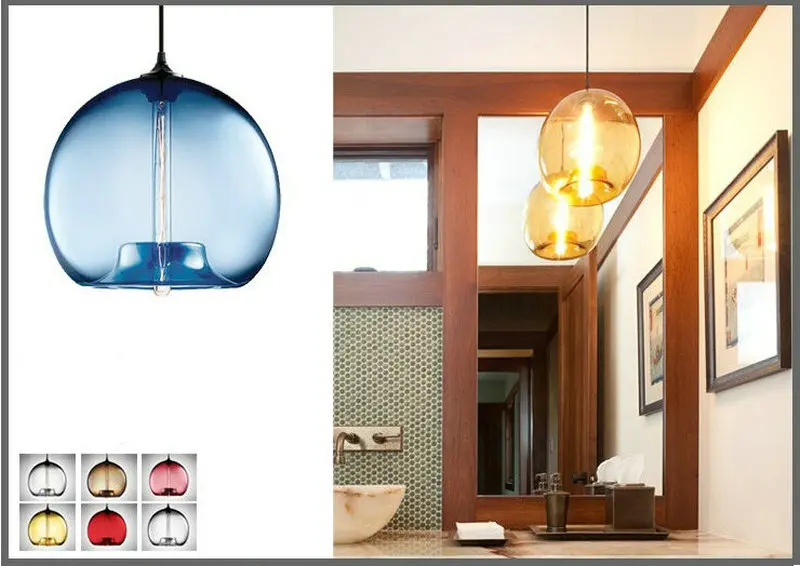 Дизайнерские подвесные светильники В креативном стиле для бара, ресторана, прозрачный цветной стеклянный абажур, светодиодный ная лампа накаливания для гостиной, столовой