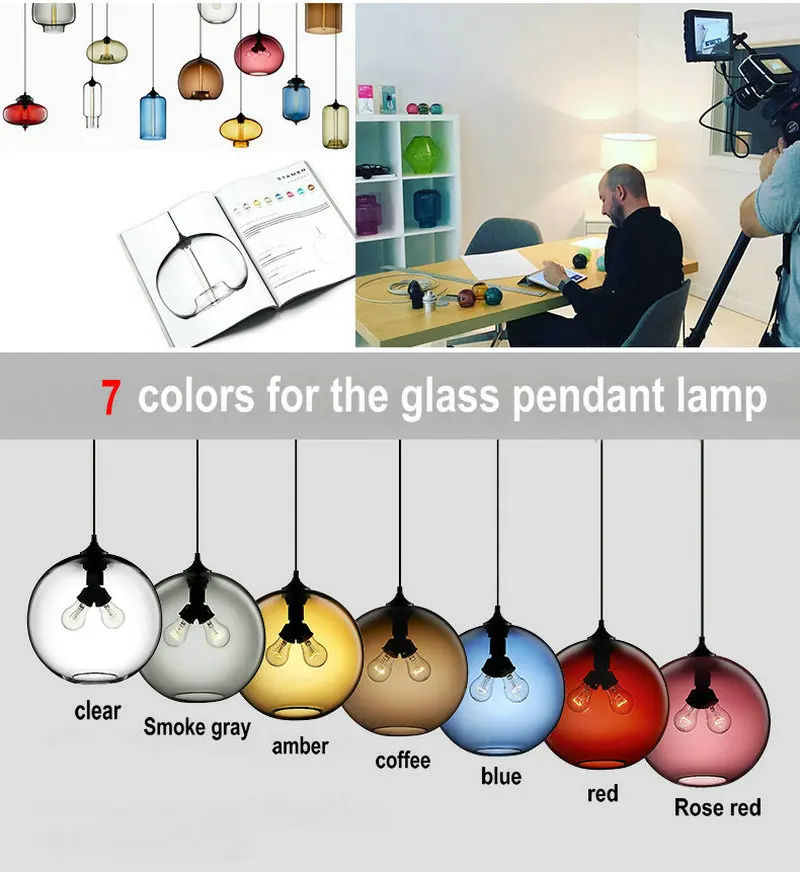 Креативный дизайн Бар Ресторан подвесные светильники Прозрачный Красочный стеклянный абажур гостиная Эдисон светодиодный подвесной светильник для столовой