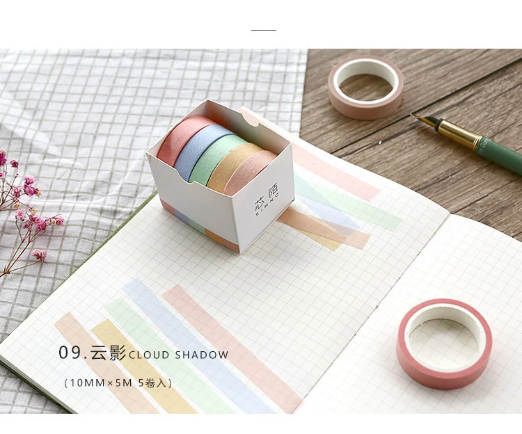 5 шт. однотонная лента 5 рулонов может быть разорвана дневник ручна...