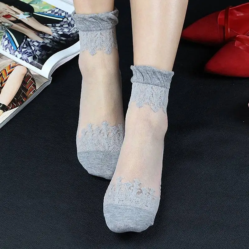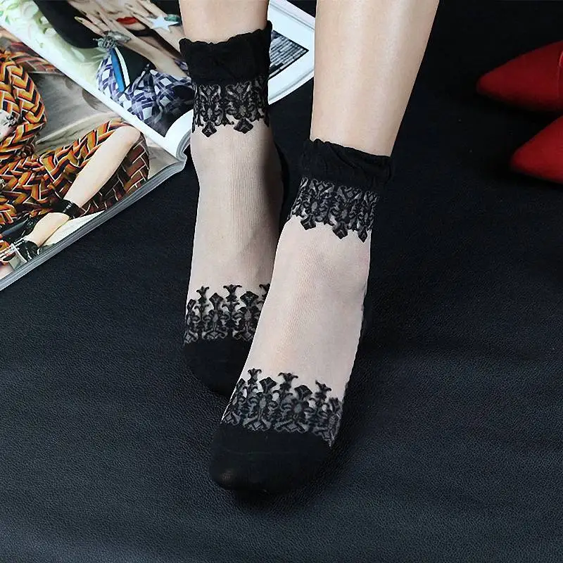 Женские кружевные носки с кристаллами, один размер, цвета на выбор
