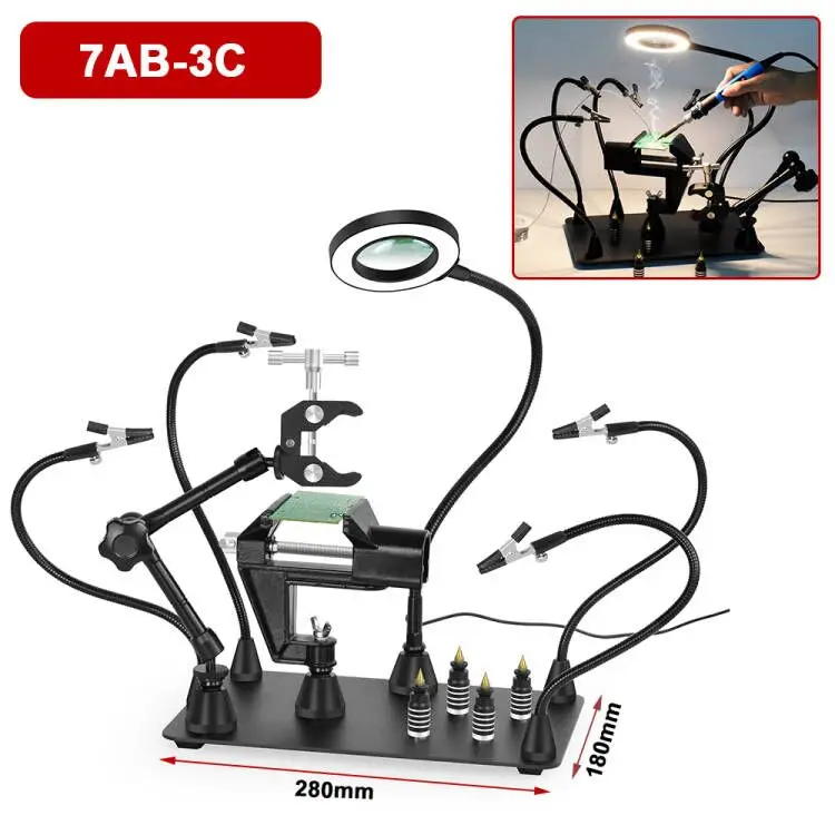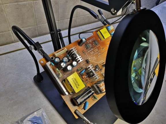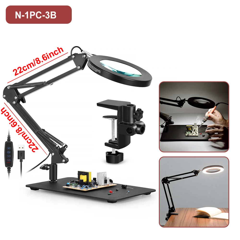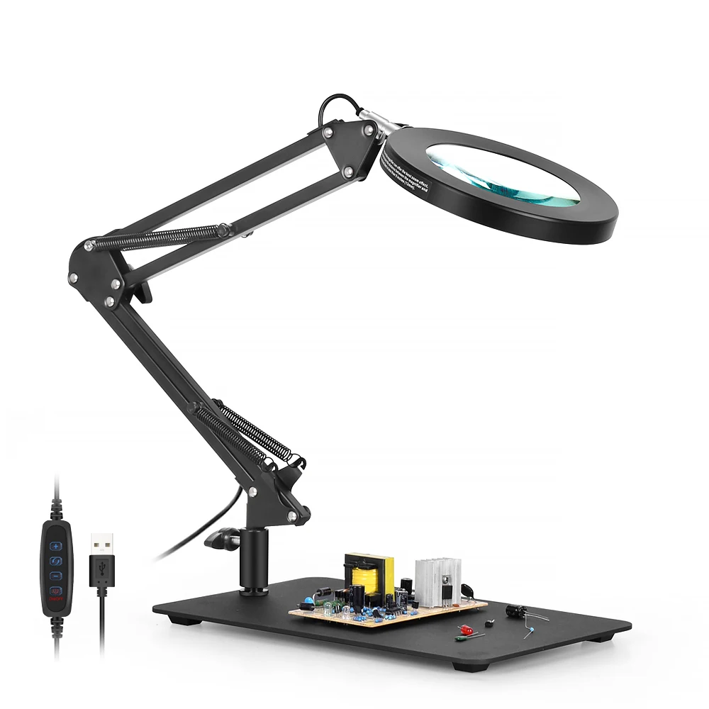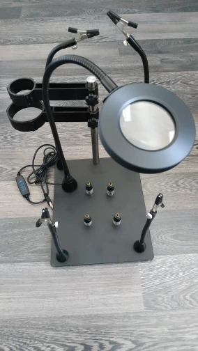 Фантастическое решение для электронной мастерской. У меня была пара сторонних инструментов, но это подделка нового качества для работы. Печатная плата, установленная с зажимами, является стабильной. Источник света бестеневой. Лупа большого размера позволяет видеть удобную площадь печатной платы. Вам не нужно гадать, где находится железный наконечник, как в случае небольших луп.
