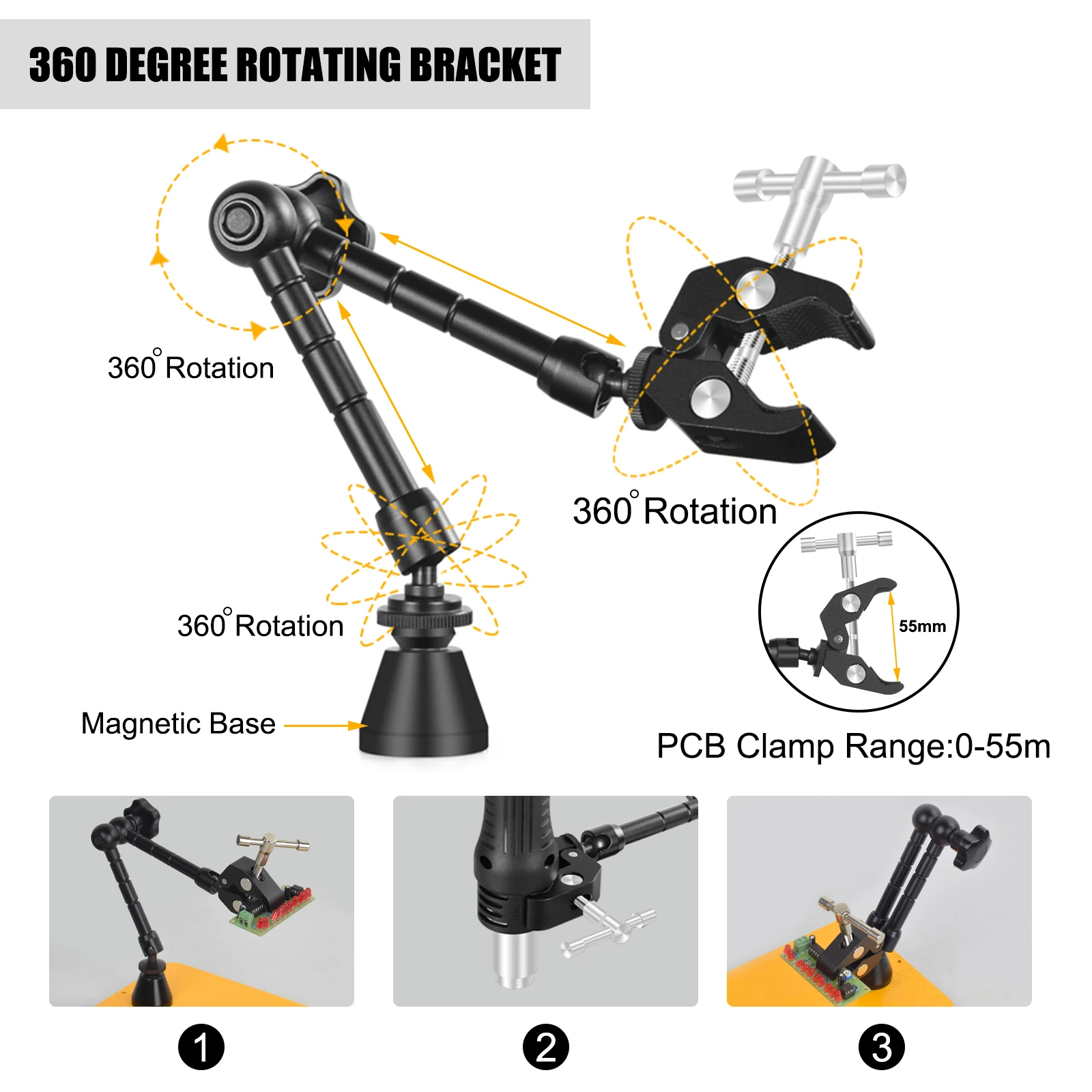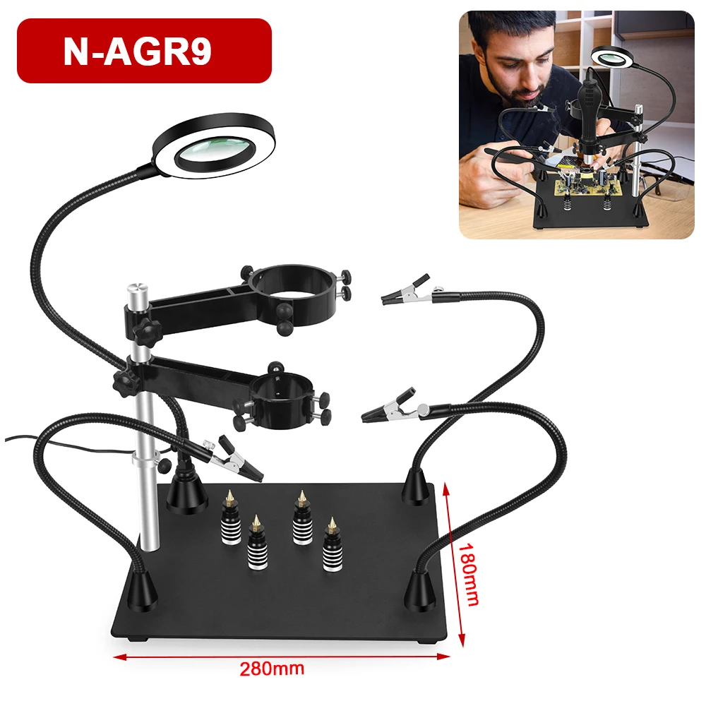 NEWACALOX Магнитная печатная плата с фиксированным зажимом Гибкая рукоятка для пайки третья рука 5X Лупа стеклянный держатель паяльника Инструменты для ремонта