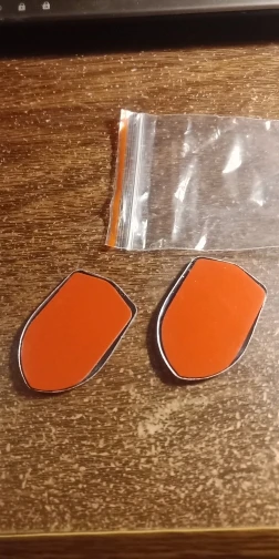 Это комплект, цена за две. Качество, скажу так: пойдет. Чеканка, покрашен краской. Родные еще залиты как-то глянцевой штукой. Липучка в комплекте и наклеена уже.