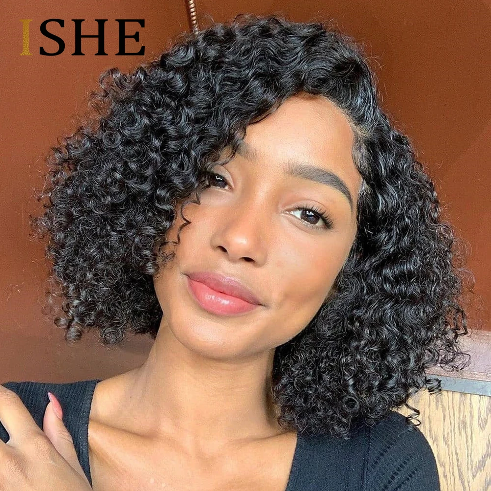 ISHE HD прозрачные кружевные 13*6 человеческие волосы на фронте, парики, глубокие кудрявые бразильские волосы Remy, кудри, парики, глубокая часть, предварительно выщипанные волосы, полный конец для женщин, черные волосы