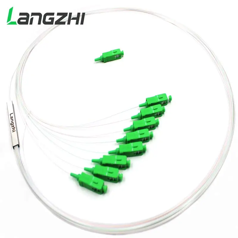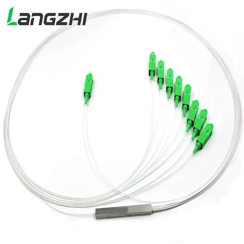 10 шт.лот 0,9 мм стальной трубчатый волоконно-оптический PLC сплиттер 1x8 SCAPCMini Blockless 1*8 Sc APC коннектор волоконно-оптический PLC сплиттер
