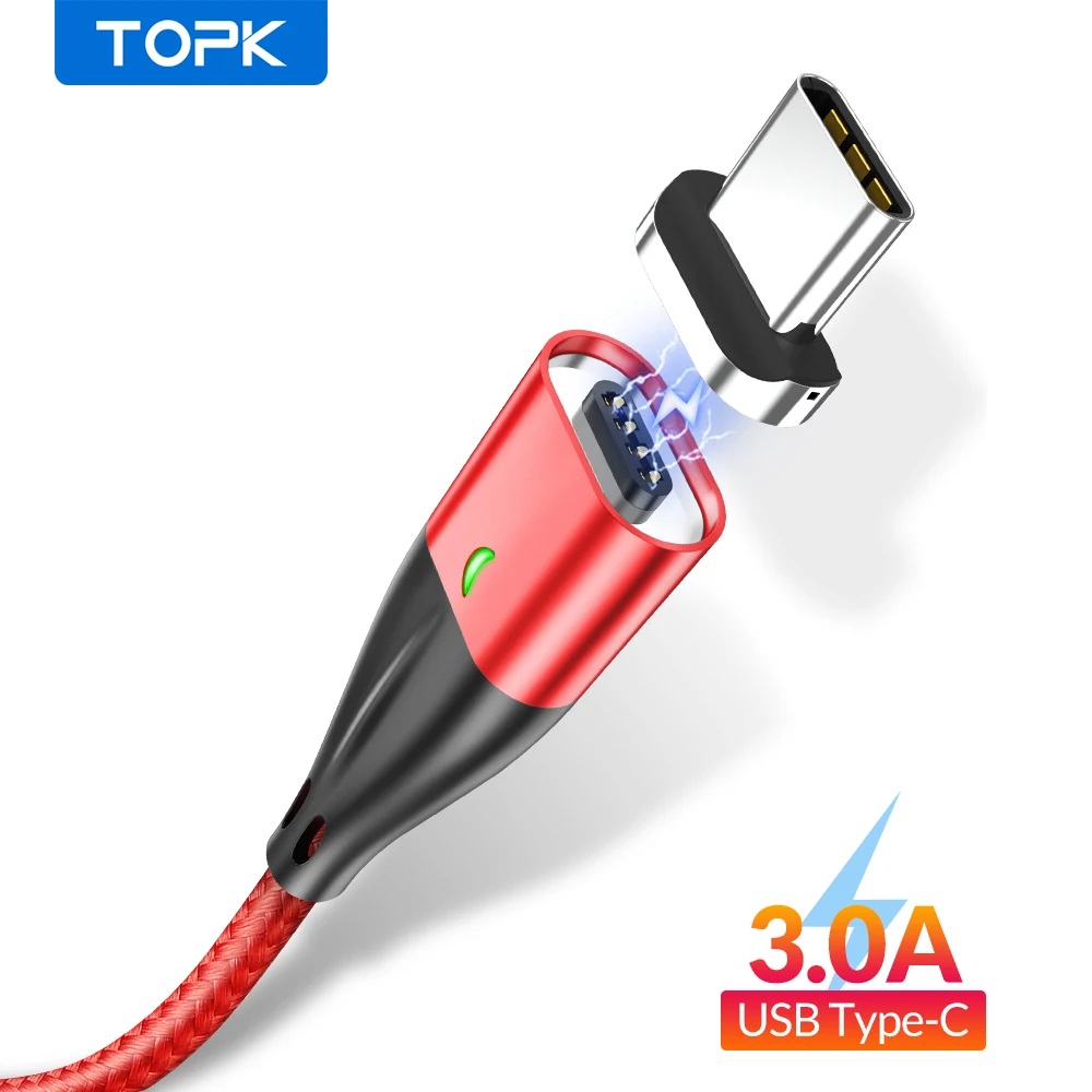 Магнитный кабель TOPK 1 м 3A, кабель для быстрой зарядки типа C, USB C, кабель для передачи данных для Xiaomi Redmi Note 7 Samsung