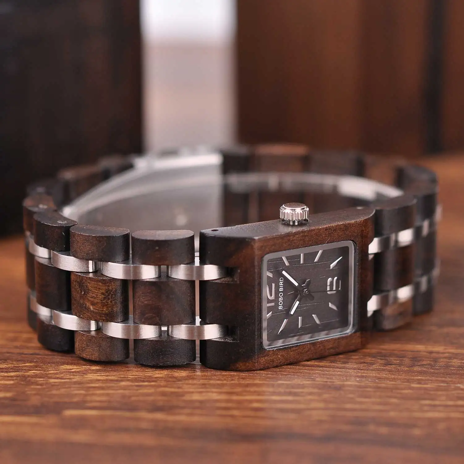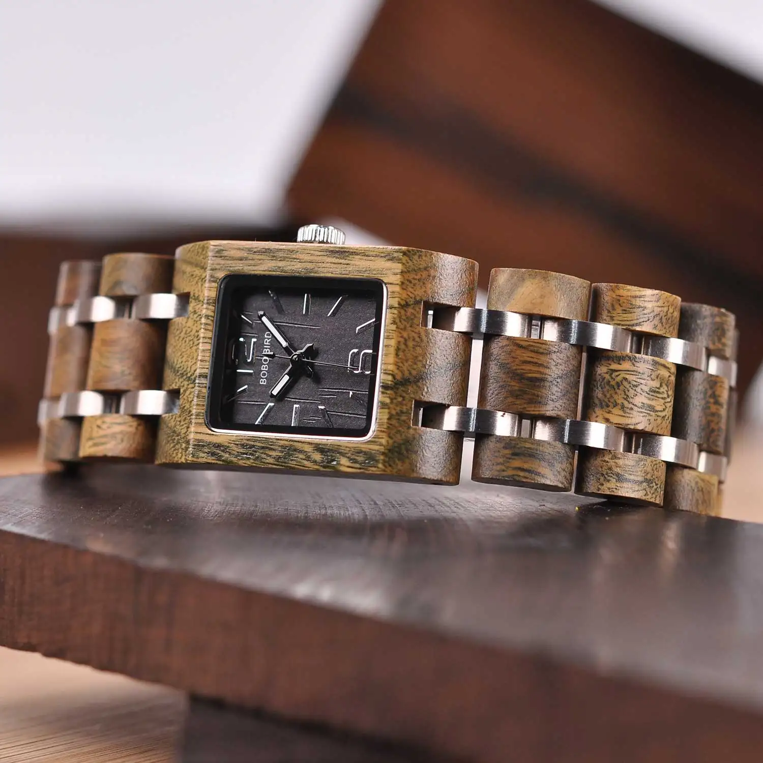 BOBOBIRD Для женщин часы деревянные квадратные женские элегантные с...
