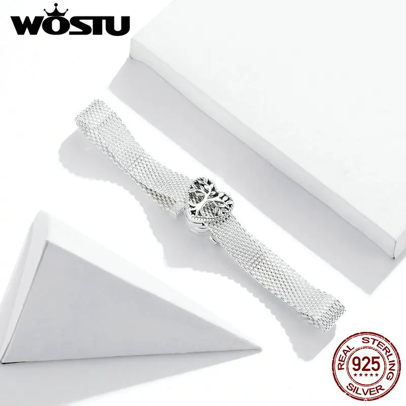 WOSTU круглые шармы из стерлингового серебра 925 пробы с фианитами, зажим в форме шарика, подходит для браслета с зеркальным покрытием, аксессуары для ювелирных изделий CQX101