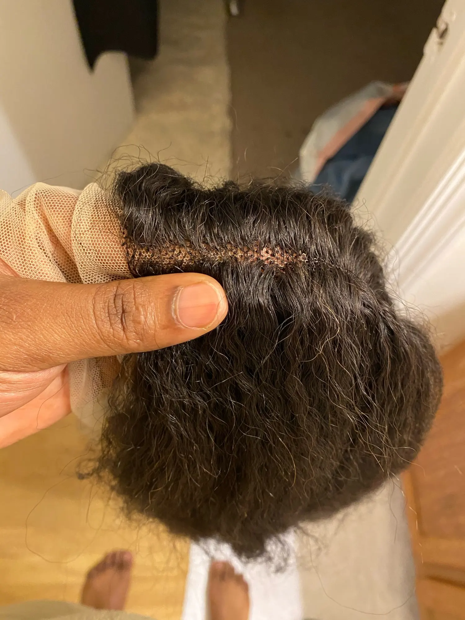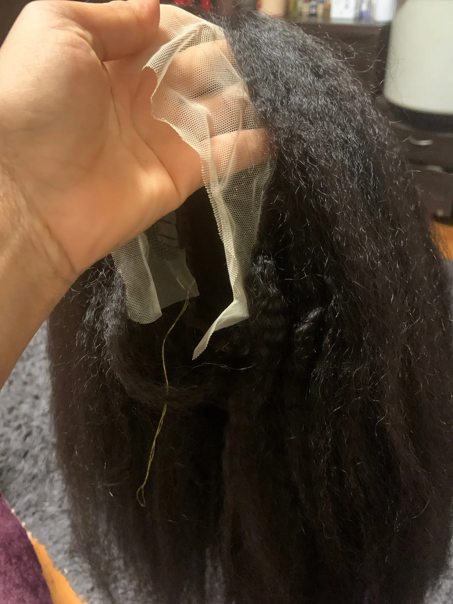 The hair isn't black like i thought but its not a big deal my problem is the knot it looks sooooo bad. Other than that the wig is full, the seller is good, gives you infomation.