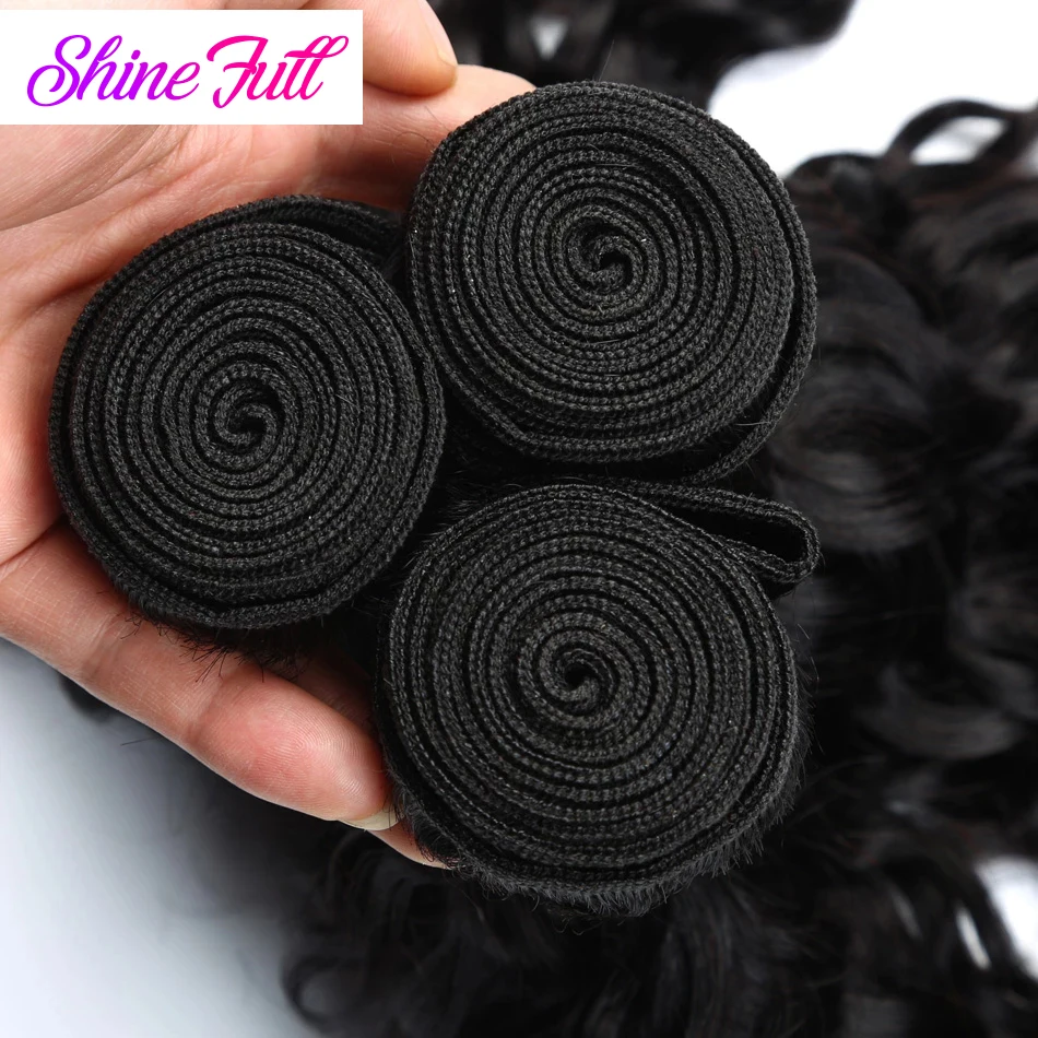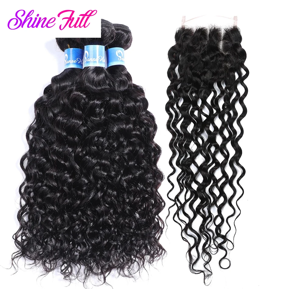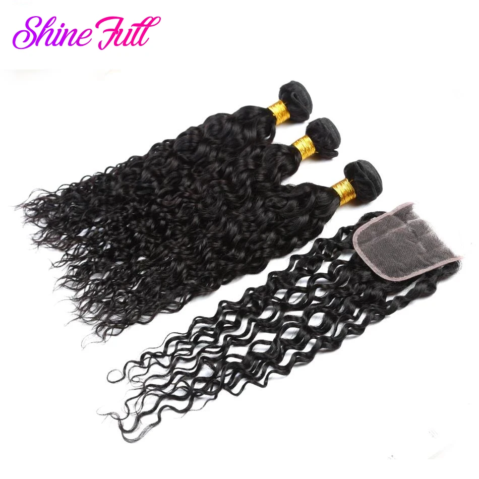 ShineFull волосы бразильские волнистые волосы 3 пряди с кружевной застежкой 4*4 не Реми волосы 100% человеческие волосы для наращивания могут быть окрашены