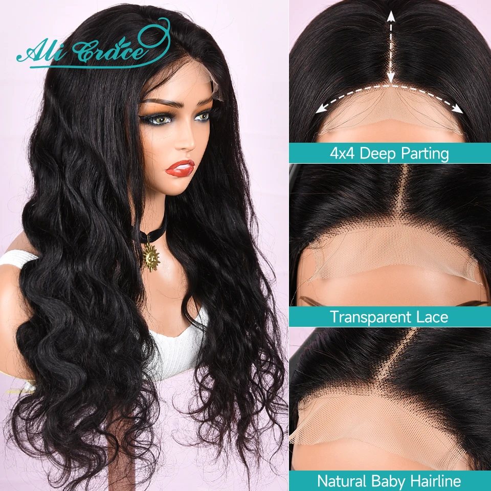 Ali Grace волнистый парик с фронтальным кружевом, 30 дюймов, волнистые человеческие волосы, парики для женщин, бразильские предварительно выщипанные кружевные передние человеческие волосы, парики