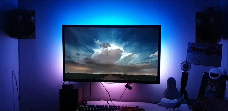 Отличная подсветка. Подключил к Mi box. Приложение есть на 4пда. Главное настроить. В углах разрезал и подпаял провода чтобы не сгибать ленту. Наклеил сзади телевизора. Яркость пришлось убавить, очень мощно светит. В общем заказал и для компа тоже. Супер решение!