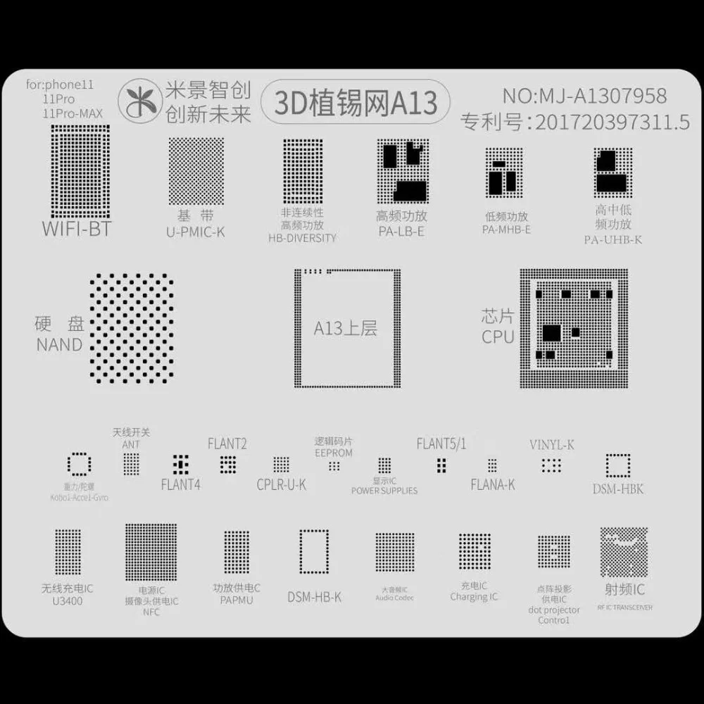 Трафареты MJ 3D BGA для iPhone A8 A9 A10 A11 A12, шаблон для пайки ЦПУ, для iPhone 6-11Pro Max