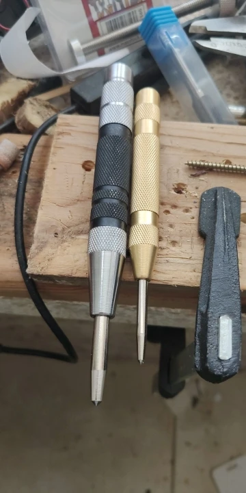 качество отличное! Большой бьёт чуть сильней, но незначительно на глаз. Корпус сделан (колпачки) из нержавейки. Магнитятся, но без покрытия, чёрная вставка - воронёная. Десять раз подряд - ни одного даже намёка на сбой. Малый сделан полностью из латуни. Резьба левая на колпачках. Длина такая же как и у ноунейма дешёвого, но сам корпус короче примерно на сантиметр. Пружина на бойке мощнее в два раза (толще). Двадцать раз подряд - ни намёка на сбой, всё чётко. Край бойка на глаз не видно, чтоб развальцевался у обоих, керн не затупился. Видно сталь не плохая. Проверял на гайке М10 установленной на наковаленке миниатюрной. Для обычных сталей и не только - самое то!
