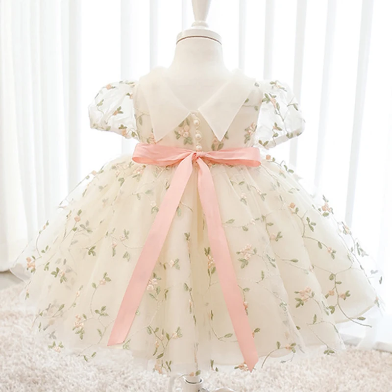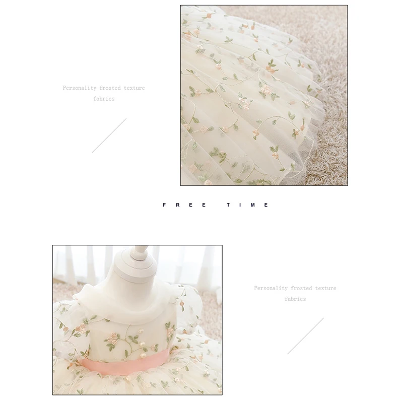 Нарядное кружевное платье с длинными рукавами и цветочным узором для девочек на день рождения Элегантное Длинное белое кружевное платье с бантом на талии для девочек