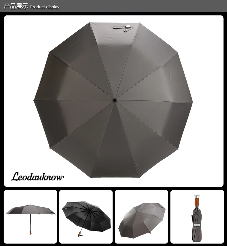 Деревянный автоматический складной зонт Leodauknow, мужской деловой классический зонт с черным покрытием 10K, ветрозащитный Новый брендовый Зонт от дождя