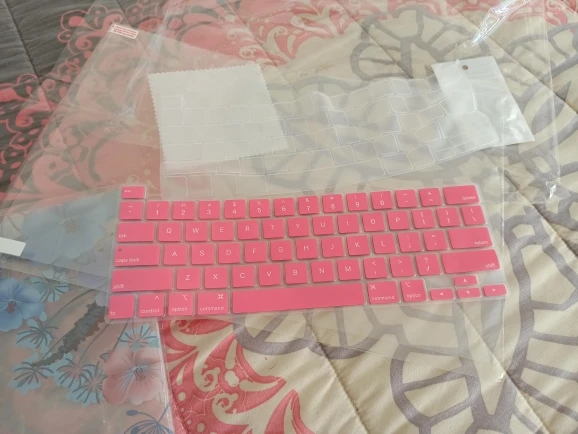 Привет! Пластиковая крышка очень приятная. Мне нравится! Тем не менее, защита клавиатуры/коврик не имеет таких же клавиш, как ноутбук. Я разочарован этим, потому что коврик для клавиатуры/протектор очень хороший! Мой Macbook Air приобретается в Нидерландов, возможно, клавиатура отличается? Не могли бы вы получить защитную клавиатуру для этой клавиатуры? Спасибо!
