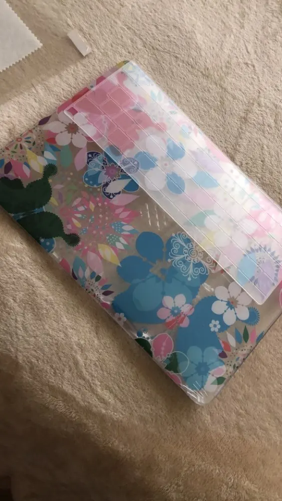 Чехол очень хороший. В комплект входит прозрачная нижняя часть, а также декорированный верх, очень удобный чехол для клавиатуры, много штепсельных вилок для всех портов компьютера и крышка экрана, что является единственным, что не так легко разместить без каких-либо пузырьков