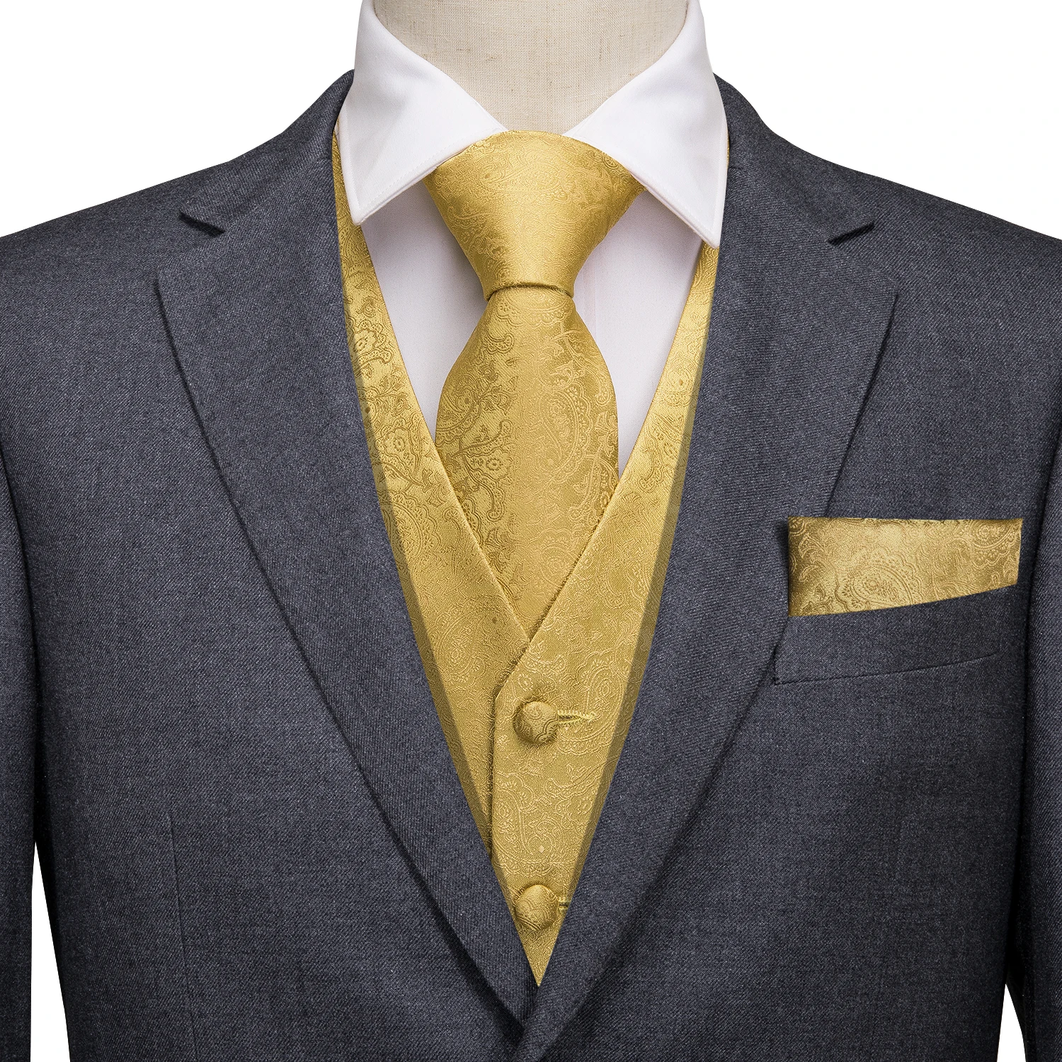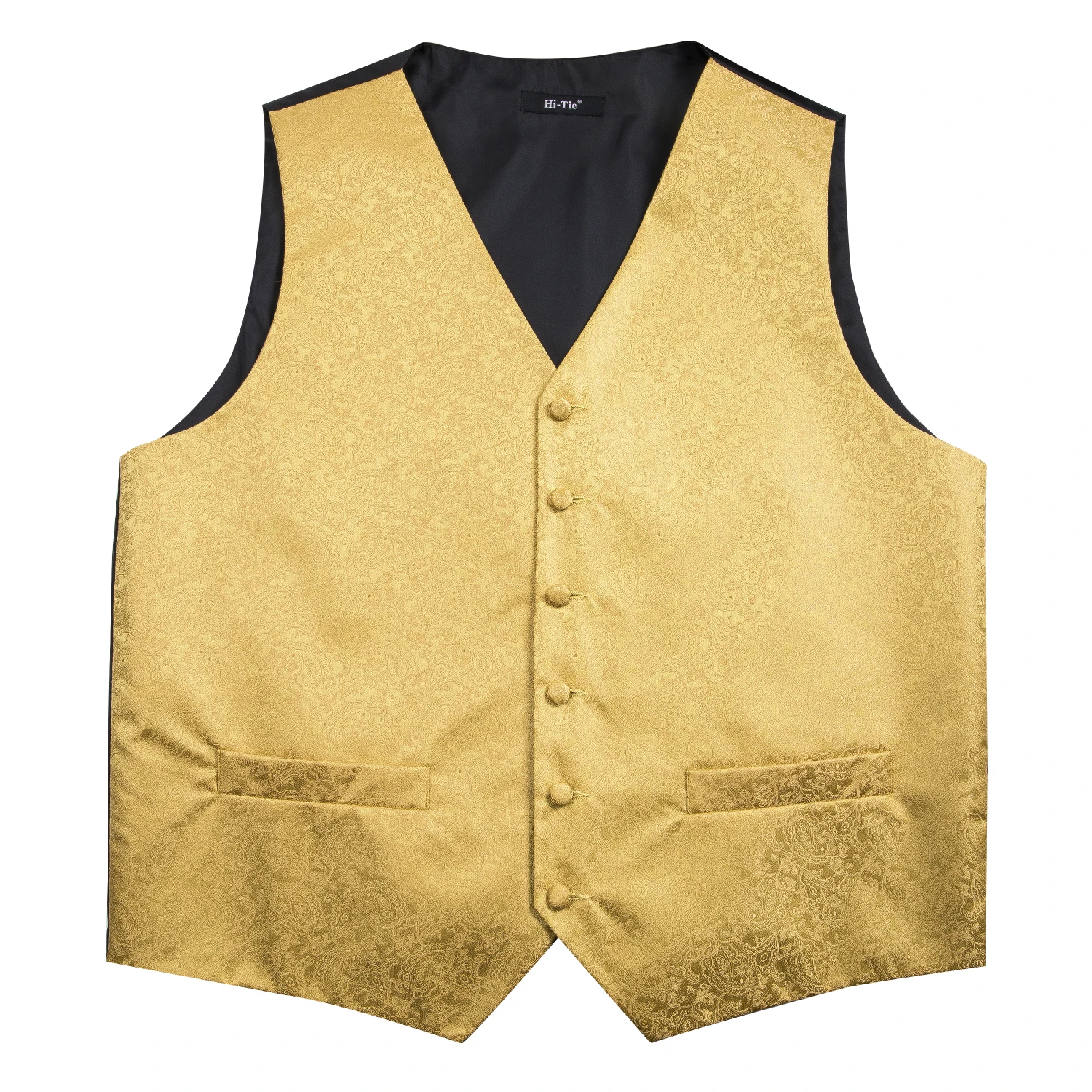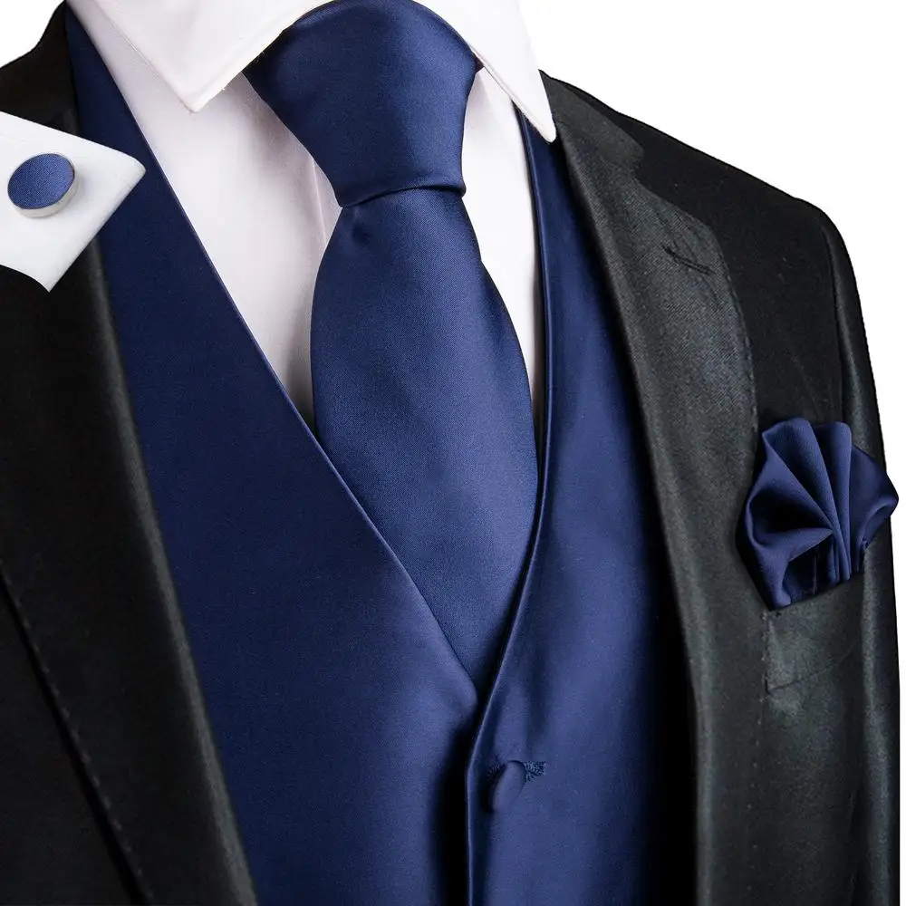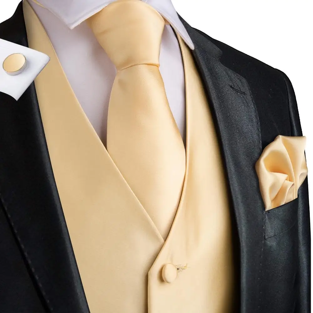 Hi-Tie Мужской комплект жилета, Шелковый однотонный жилет, жилеты для мужчин, высокое качество, галстук, карман, квадратные запонки, набор, черный, синий, красный, золотой жилет