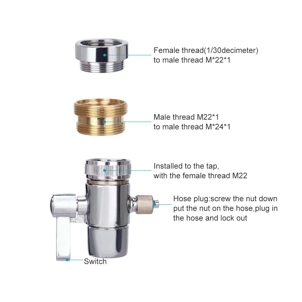 Простая установка: Просто установите на кран с адаптером (сепаратор воды)