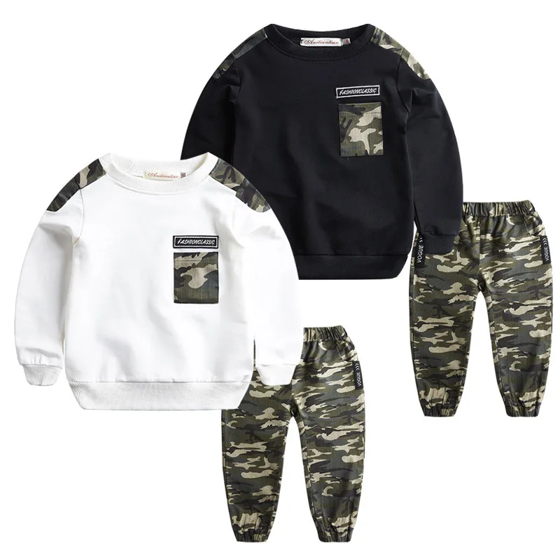 Спортивный костюм Одежда для мальчиков камуфляжные топы и штаны кос...