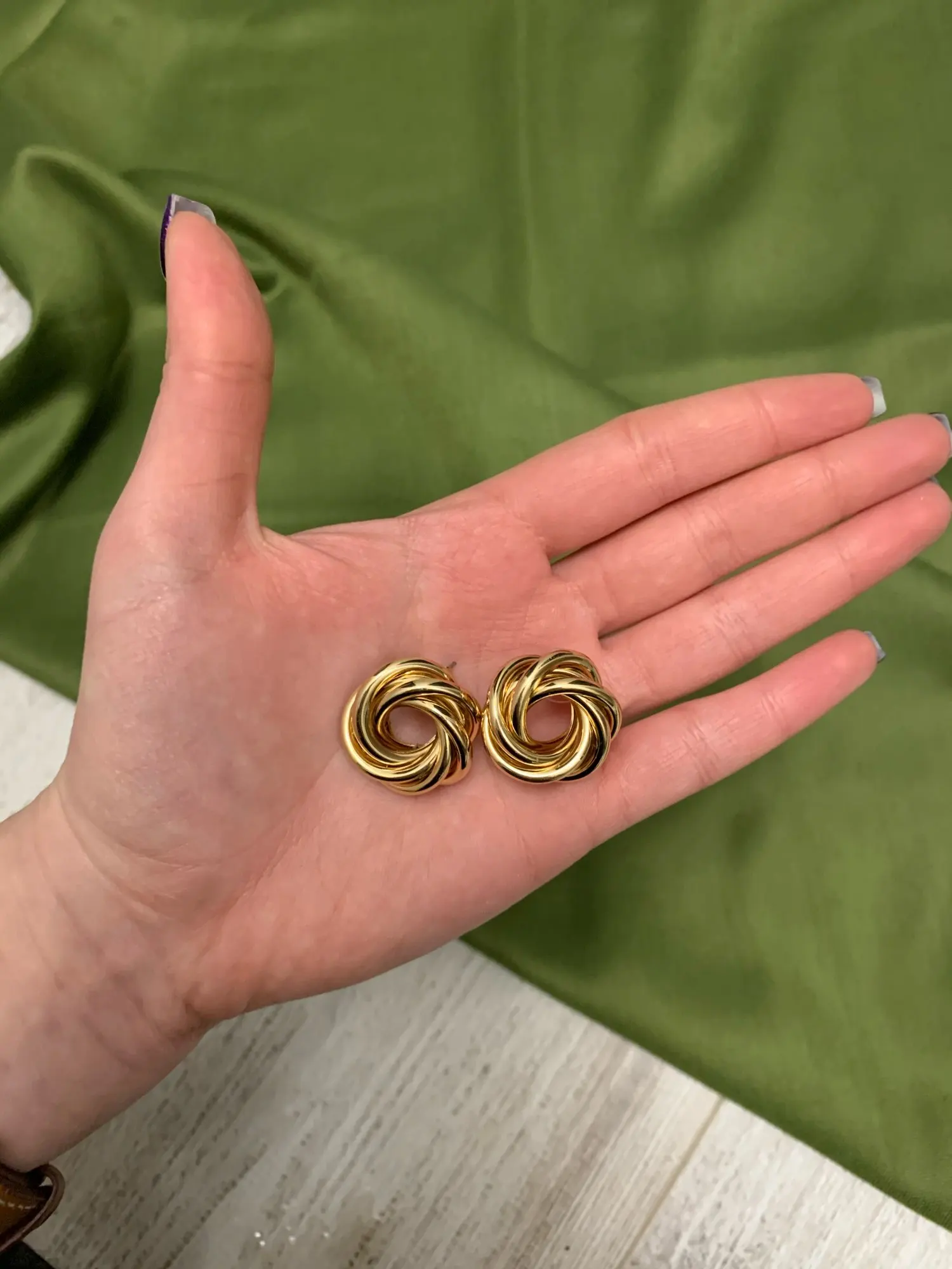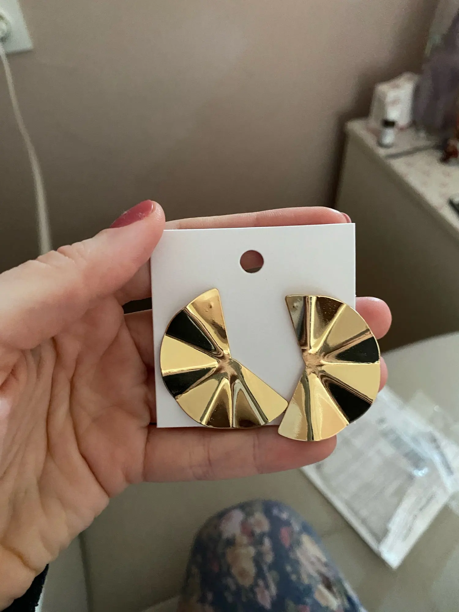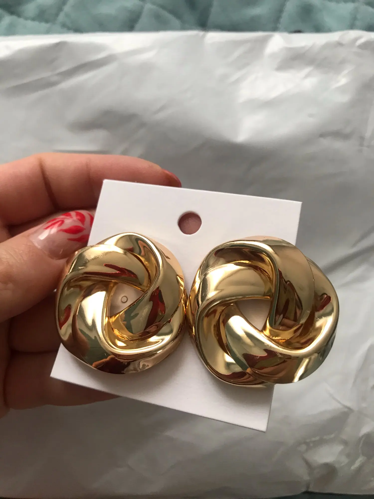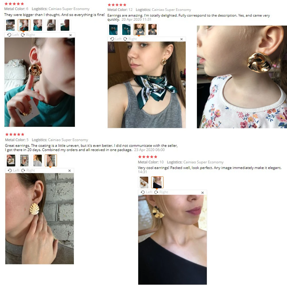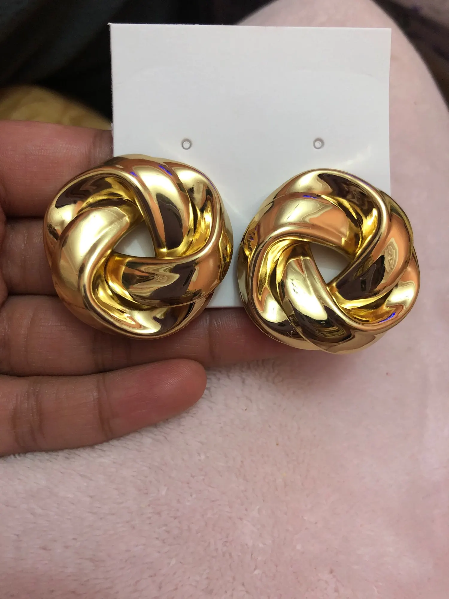 Отличные серьги, точно как на фото, крупные, думала будут немного меньше, но выглядят достойно) посмотрим, как будет в носке)