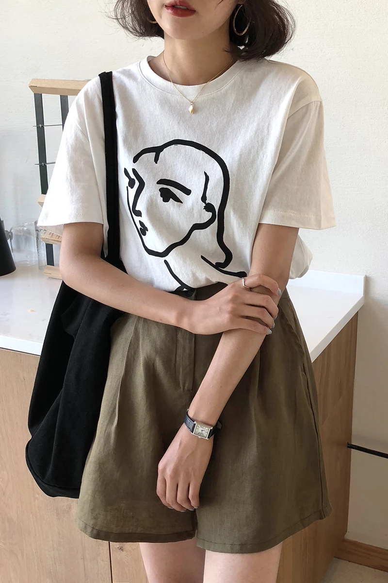 Футболка PUDO HJN с рисунком лица Анри матиссе, Женская Милая футболка с графическим рисунком в Корейском стиле